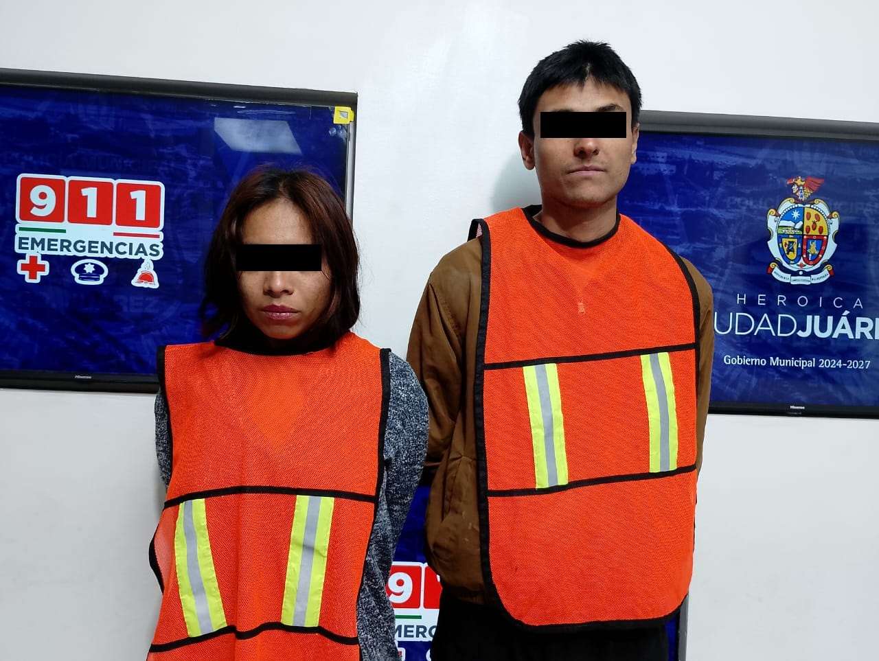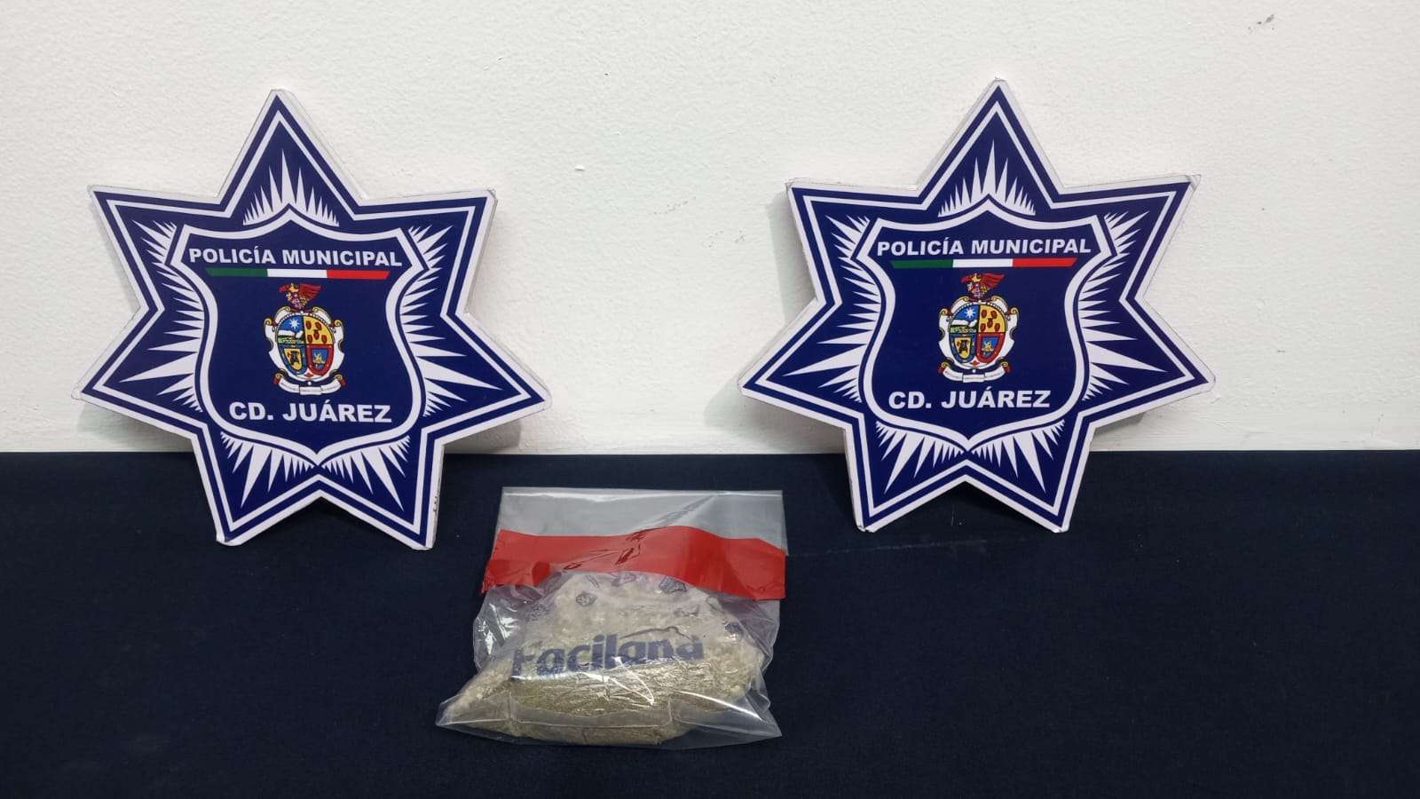 Ciudad Juárez.- Agentes de la Secretaría de Seguridad Pública Municipal arrestaron a Armando A. G. y Frida C. de la C., por su presunta responsabilidad en la comisión de los delitos contra la salud y posesión de vehículo con reporte de robo.