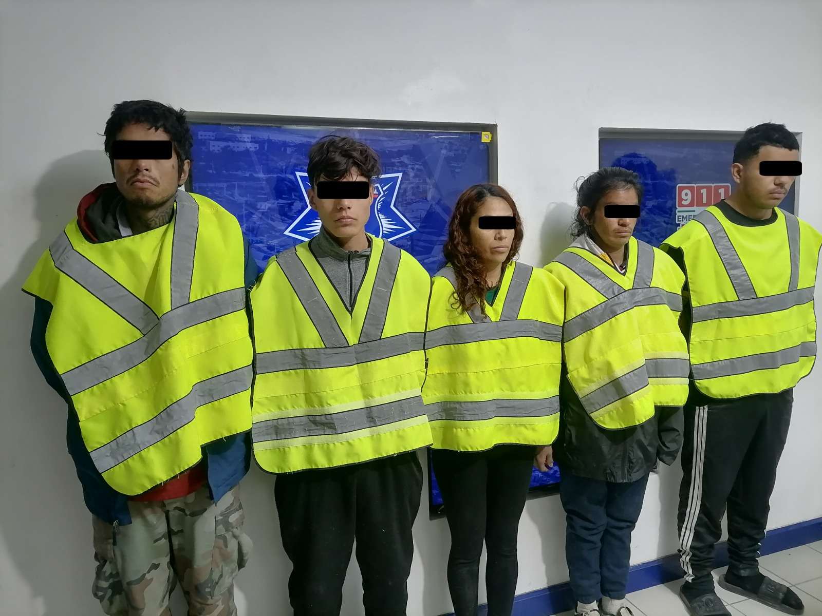 Por lo anterior, fueron detenidos quienes dijeron llamarse Norma Ibeth H. D. de 34 años, Alma Delia C. G. de 31 años, Kevin Alonso C. A. de 18 años, José Manuel M. M. de 25 años, Marcos H. S. de 21 años y un adolescente de 16 años.