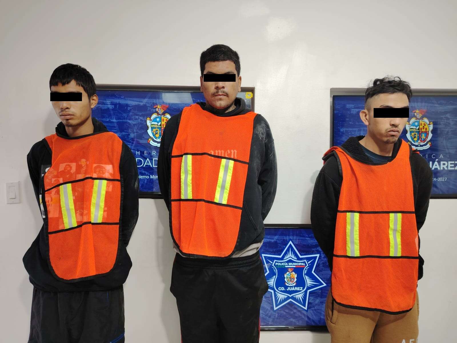Ciudad Juárez .- Elementos de la Secretaría de Seguridad Pública Municipal arrestaron a Efrén Aldair T. G., Filiberto B. A. y José Eduardo M. M., por su presunta responsabilidad en la comisión de delitos contra la salud, resultando uno de ellos con una orden de aprehensión vigente.