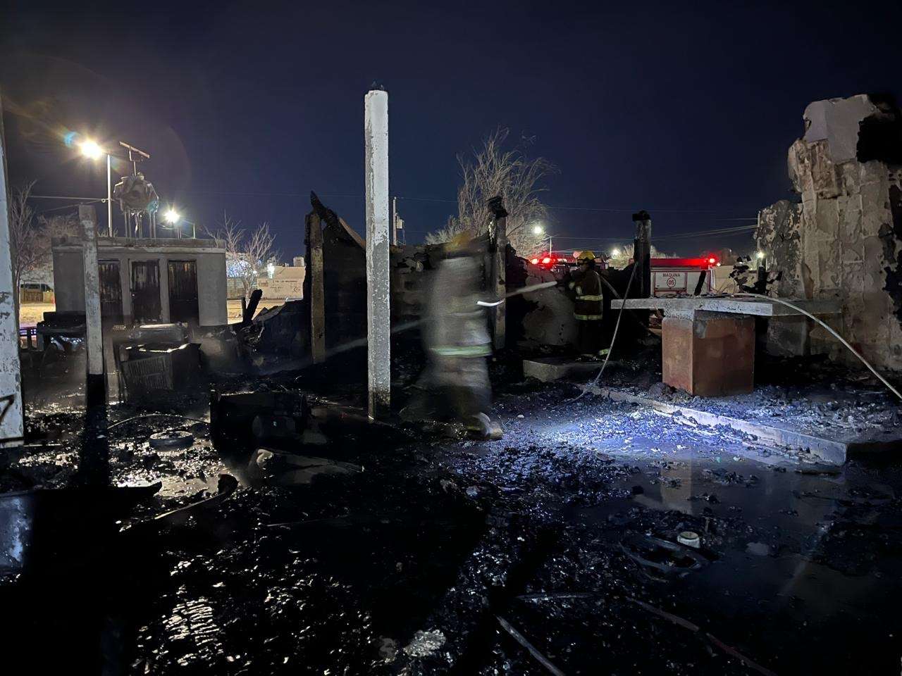 En el lugar se pudo observar estructura colapsada, mobiliario completamente calcinado y restos metálicos retorcidos entre los escombros, evidencia de la intensidad del fuego que consumió principalmente el área donde se encontraban varias sillas y un salón contiguo.