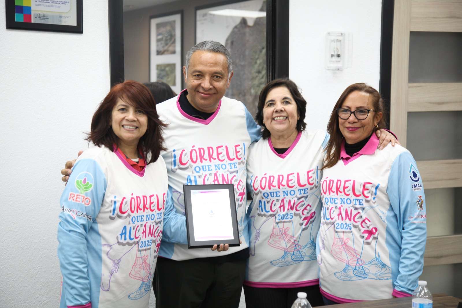 Ciudad Juárez.- Como muestra de solidaridad ante el trabajo que realiza la asociación civil Aprocancer, la Junta Municipal de Agua y Saneamiento (JMAS) donó 750 playeras para la realización de la carrera anual “¡Córrele que no te alcáncer!”, que tiene el fin de poder dar tratamientos a pacientes oncológicos.