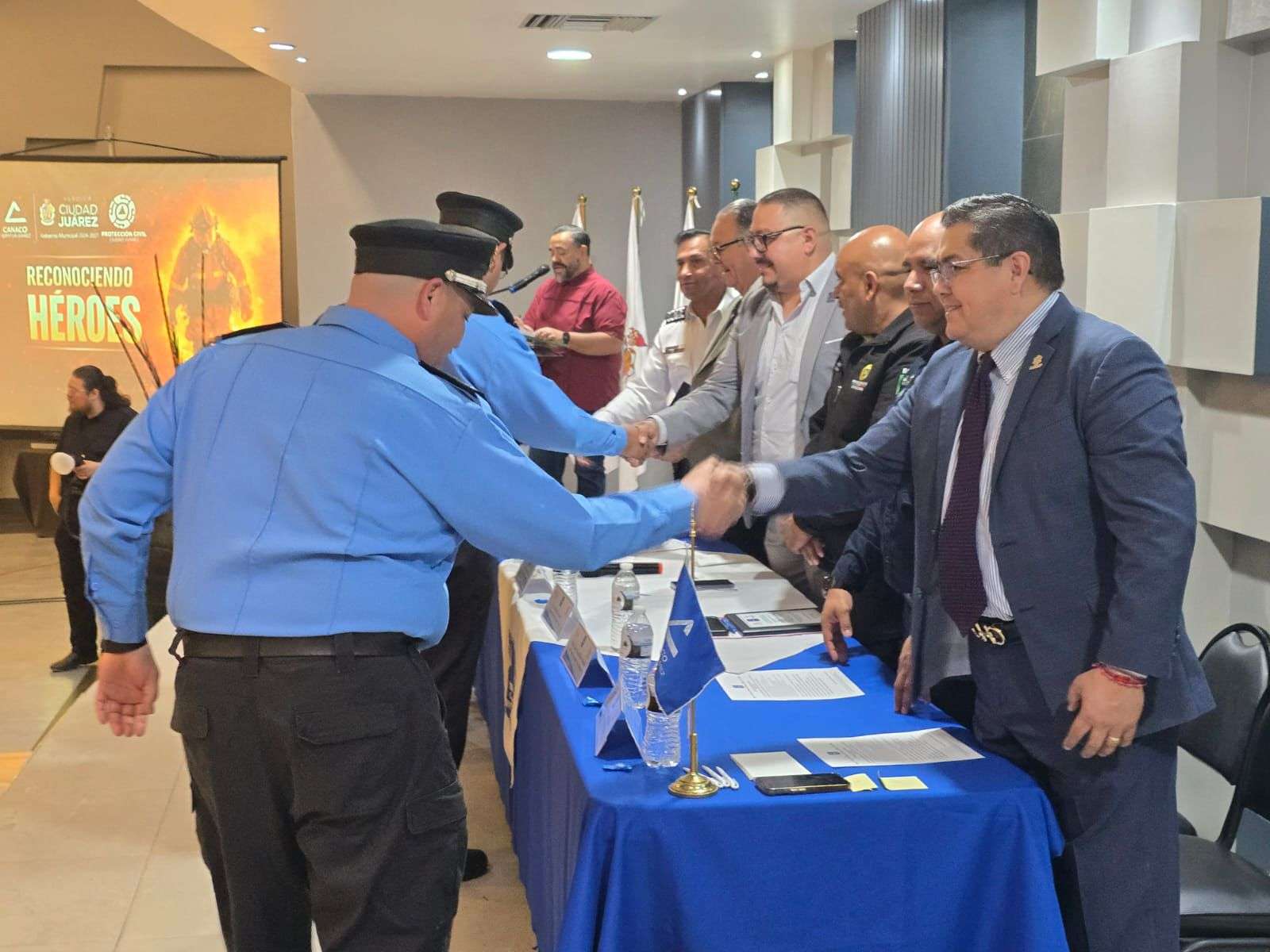 Ciudad Juárez.- La Cámara Nacional de Comercio (Canaco) realizó un acto de reconocimiento al cuerpo de Bomberos y Rescate de Juárez, en lo que fue el primer evento exclusivo organizado por el sector empresarial para honrar su labor.