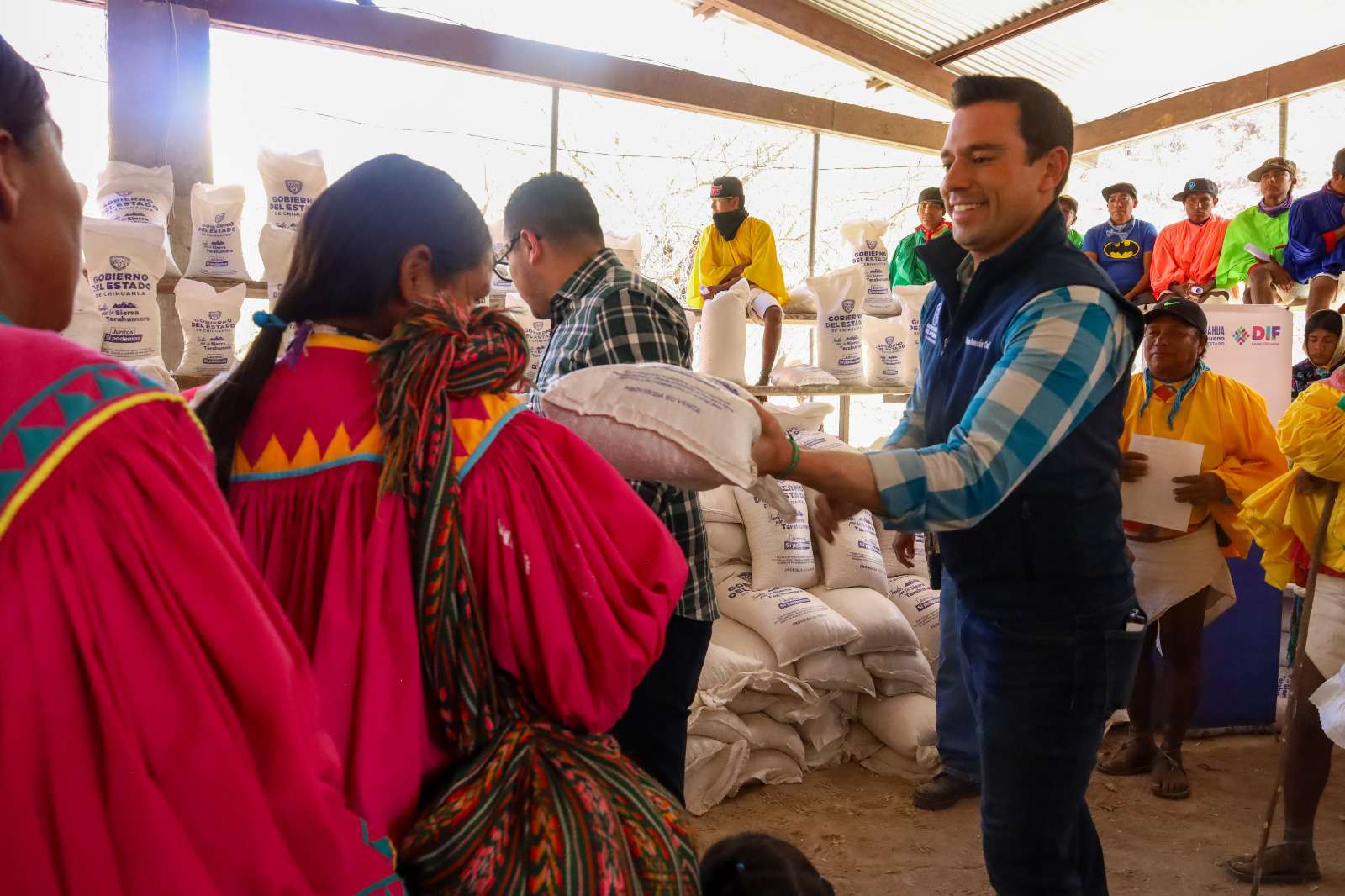 Ciudad Juárez.- Como parte de las acciones para combatir los efectos de la sequía que afecta a la entidad, y contribuir a la seguridad alimentaria de las comunidades indígenas en la Sierra Tarahumara, el Gobierno del Estado entregó apoyos de maíz y frijol a un total de 500 familias en Munérachi, municipio de Batopilas.