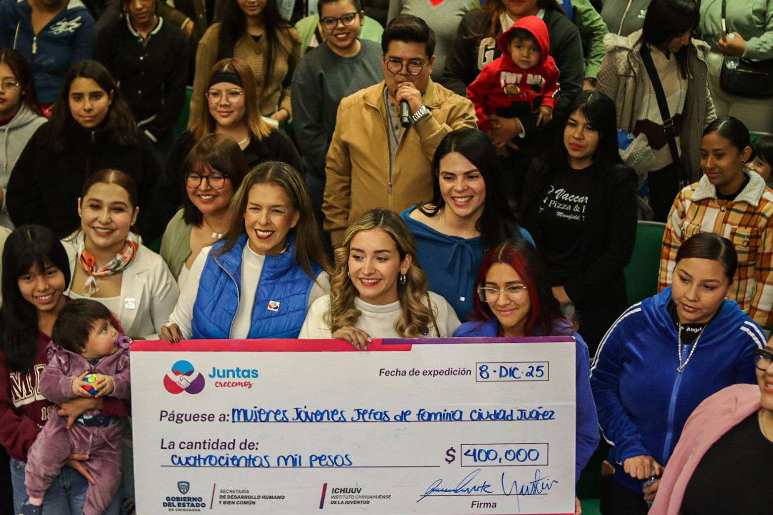 Ciudad Juárez.- El Instituto Chihuahuense de la Juventud (ICHIJUV) entregó este lunes la segunda ronda semestral de apoyos económicos del programa “Juntas Crecemos”, dirigido a jóvenes madres de familia, con el propósito de fortalecer su desarrollo personal, contribuir a la estabilidad de sus hijos y promover entornos libres de violencia desde el hogar.