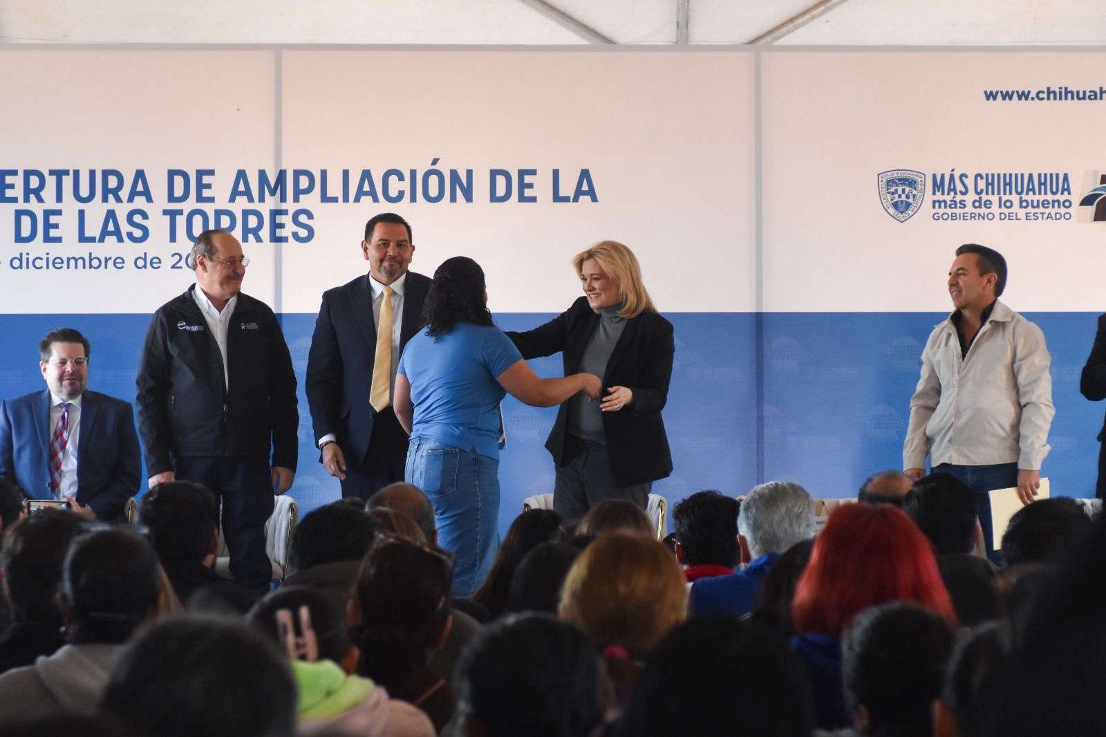 Ciudad Juárez.- La gobernadora Maru Campos encabezó en Ciudad Juárez la ceremonia inaugural de los trabajos de prolongación de la avenida de Las Torres, donde se hizo una inversión de 35 millones de pesos en beneficio de más de medio millón de habitantes.