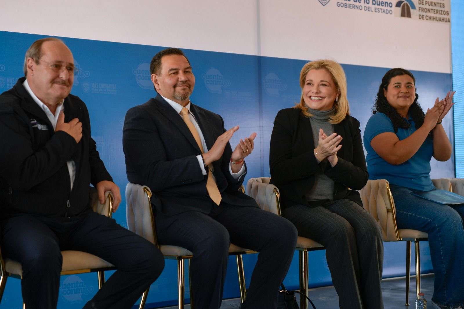 Maru Campos destacó que la obra fue financiada con recursos estatales provenientes del Fideicomiso de Puentes Fronterizos, gracias al pago de peaje de las y los usuarios de los cruces internacionales.