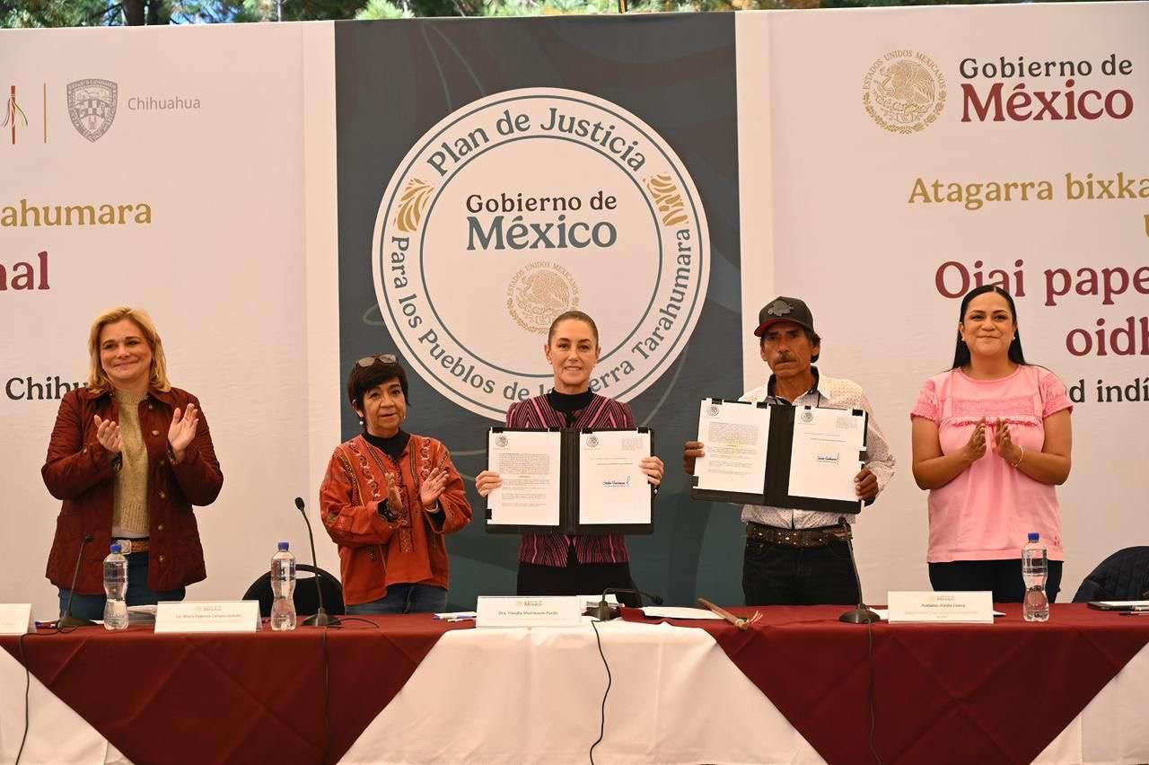 Guadalupe y Calvo.– Autoridades federales realizaron la entrega de más de 3 mil hectáreas de tierras en la Sierra Tarahumara al pueblo Ódami, como parte del Plan de Justicia de los Pueblos de la Sierra Tarahumara, informó el Gobierno de México a través de un comunicado oficial.