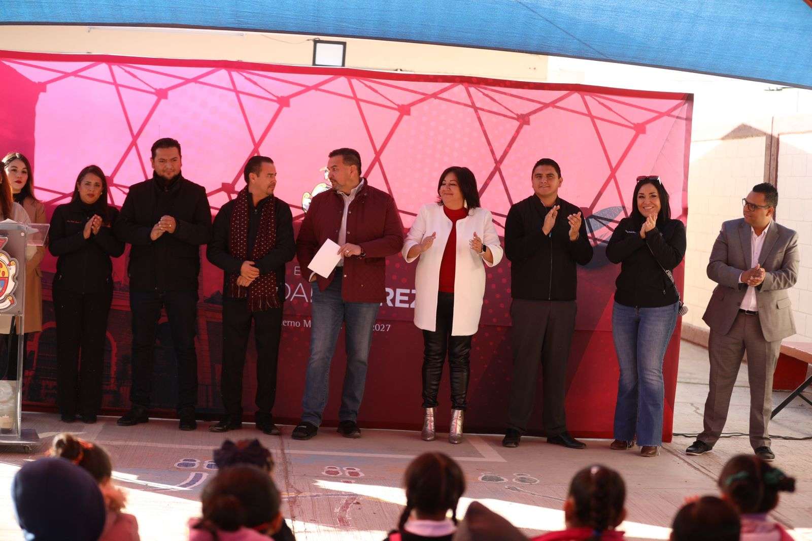 En este evento se contó con la presencia de los regidores Jorge Marcial Bueno Quiroz y Karla Michaeel Escalante Ramírez; el director general de Servicios Públicos, Arturo Rivera Barreno; el director de Educación Municipal, Guillermo Alvídrez Olivas; el coordinador general de la Sección Octava, Pedro Hidalgo y la secretaria general de la Sección Octava del SNTE, Sasil Lozano.