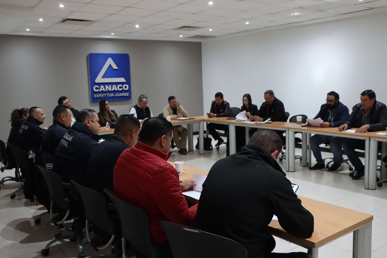 Ciudad Juárez.- El día de hoy se realizó una sesión ordinaria y junta de coordinación del trabajo que se realiza entre el empresariado y la Secretaría de Seguridad Pública Municipal en las instalaciones de la Cámara Nacional de Comercio cada mes para realizar análisis sobre el tema de seguridad.