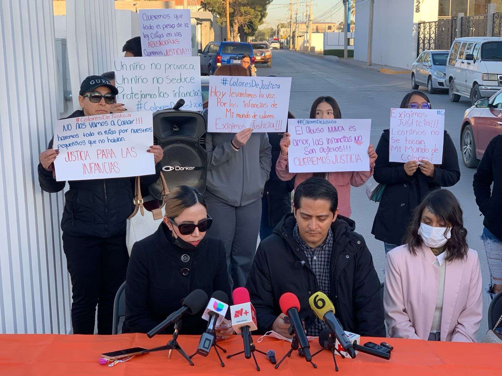 Ciudad Juárez.- Madres y padres de familia de la guardería 'Mi Mundo de Colores' ubicada en el Camino Viejo a San José, exigieron está mañana durante una conferencia de prensa que el Gobierno Federal intervenga en este caso de abuso sexual contra niñas y niños en esta guardería.