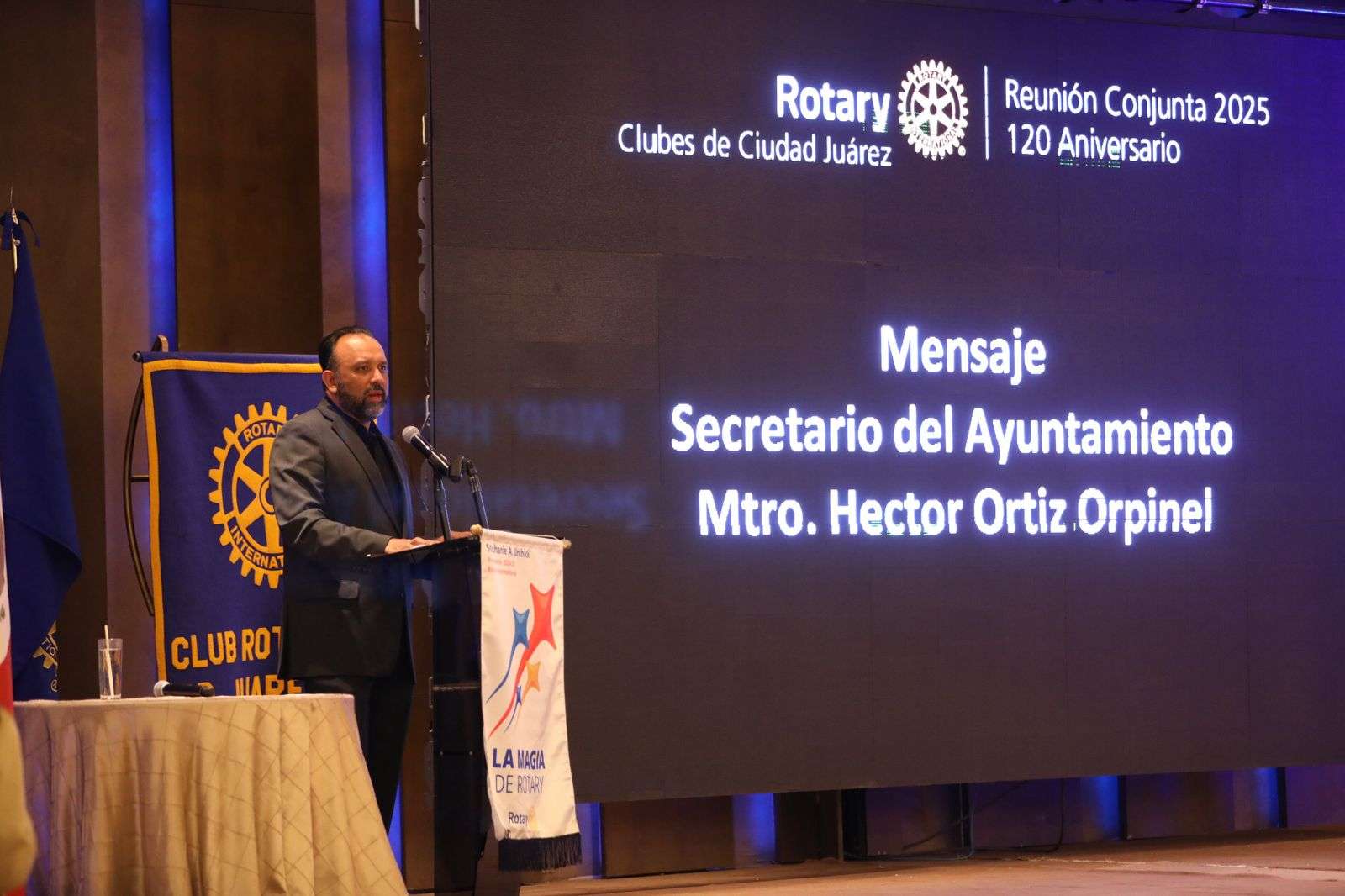 Ciudad Juárez.- Reconoce y felicita el Secretario del Ayuntamiento, Héctor Rafael Ortiz Orpinel a Rotary Internacional por sus 120 años de rotarismo en el mundo, y, sobre todo por la excelente labor que realizan en beneficio de la comunidad.