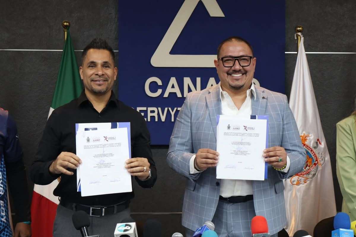 Ciudad Juárez.- El Instituto Municipal del Deporte y Cultura Física de Juárez (IMDEJ) y la Cámara Nacional de Comercio (CANACO) de Ciudad Juárez firmaron un convenio de colaboración con el objetivo de dar continuidad al Circuito Atlético Pedestre, una iniciativa que promueve la actividad física y la convivencia comunitaria en la ciudad.