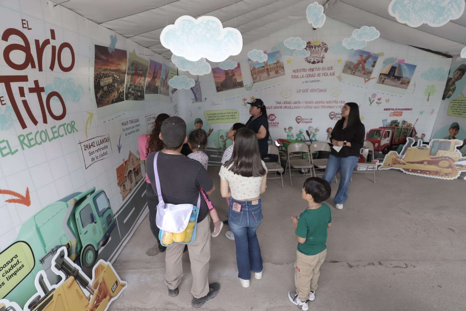Ciudad Juárez.- La Dirección General de Servicios Públicos Municipales, a través de las Direcciones de Limpia y Alumbrado Público, participa en el programa “Pequeñópolis”, donde cuenta con módulos interactivos dirigidos a infantes, con el objetivo de fomentar la educación cívica y el cuidado de la ciudad.