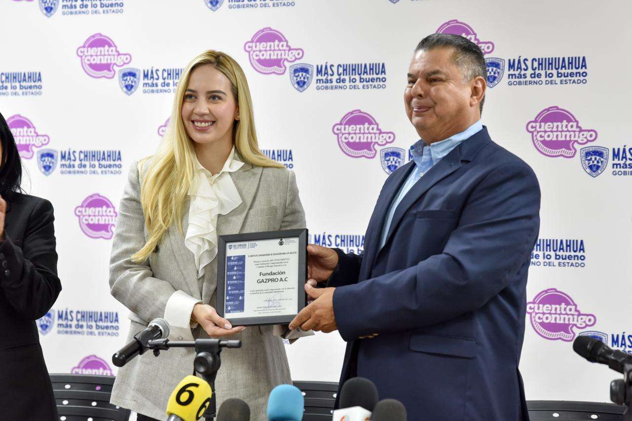 Durante la firma del convenio, el director general del ICHEA, Mario Eberto Javalera Lino, entregó un reconocimiento a Gazpro como “Fundación Comprometida con la Educación”, por su participación activa en la lucha contra el rezago educativo en el estado de Chihuahua.