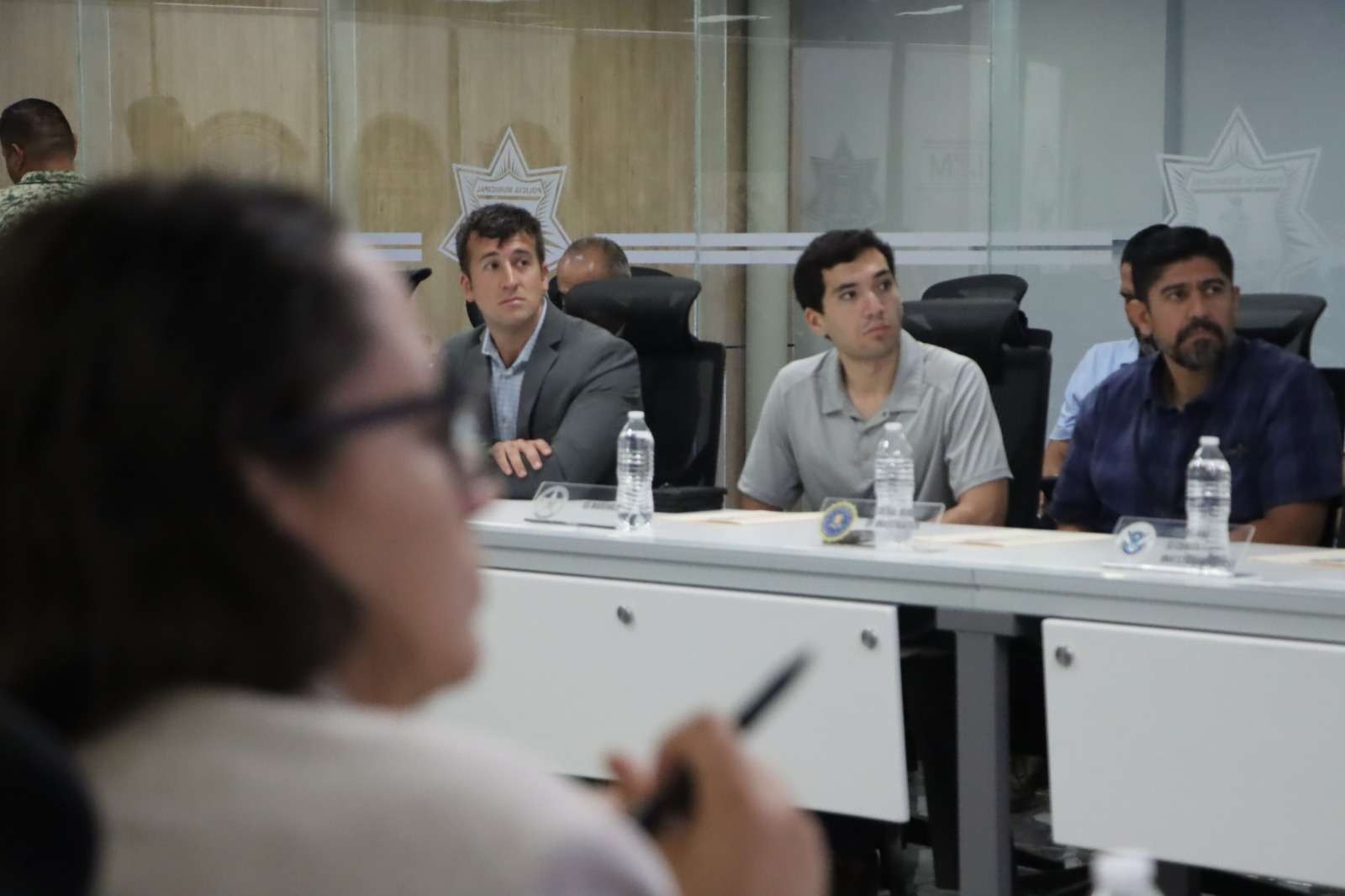 Ciudad Juárez.- La Secretaría de Seguridad Pública Municipal fungió como anfitrión durante la reunión binacional del protocolo de violencia fronteriza donde recibió a titulares y representantes de las diferentes corporaciones y agencias de seguridad de los tres niveles de gobierno tanto de esta ciudad como del vecino país.