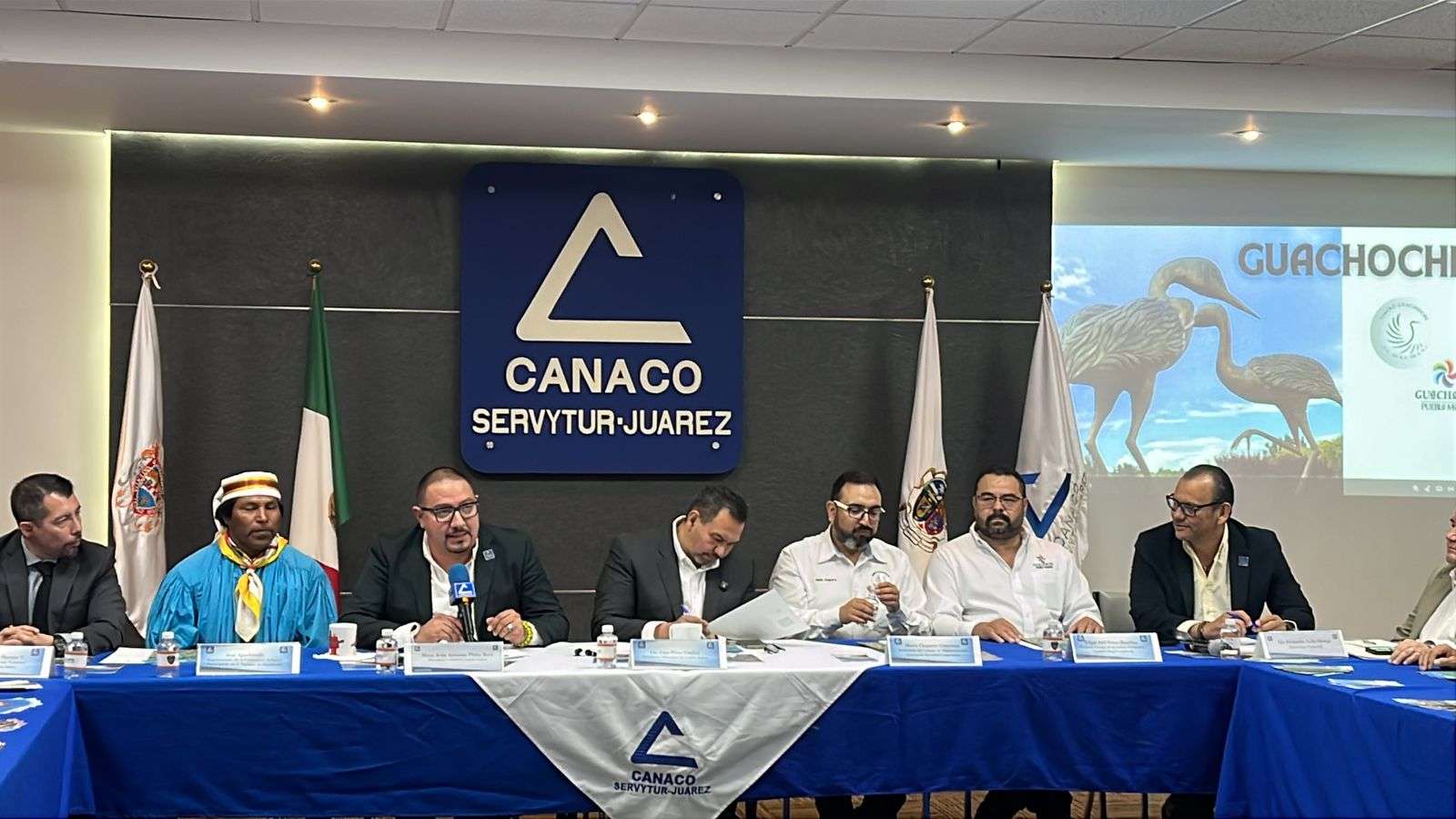 Entre los asistentes al presidium estuvieron Fernando David Ortega, director general de Canaco Juárez; Edgar Joel Palma Bustillos, director general de la Cadena Productiva Turística; Francisco Moreno Villafuerte, director de Promoción Turística del Municipio de Juárez; y José Apachuachi, representante de la comunidad indígena de Guachochi, quien subrayó el papel de los pueblos originarios en la preservación cultural y natural de la región.