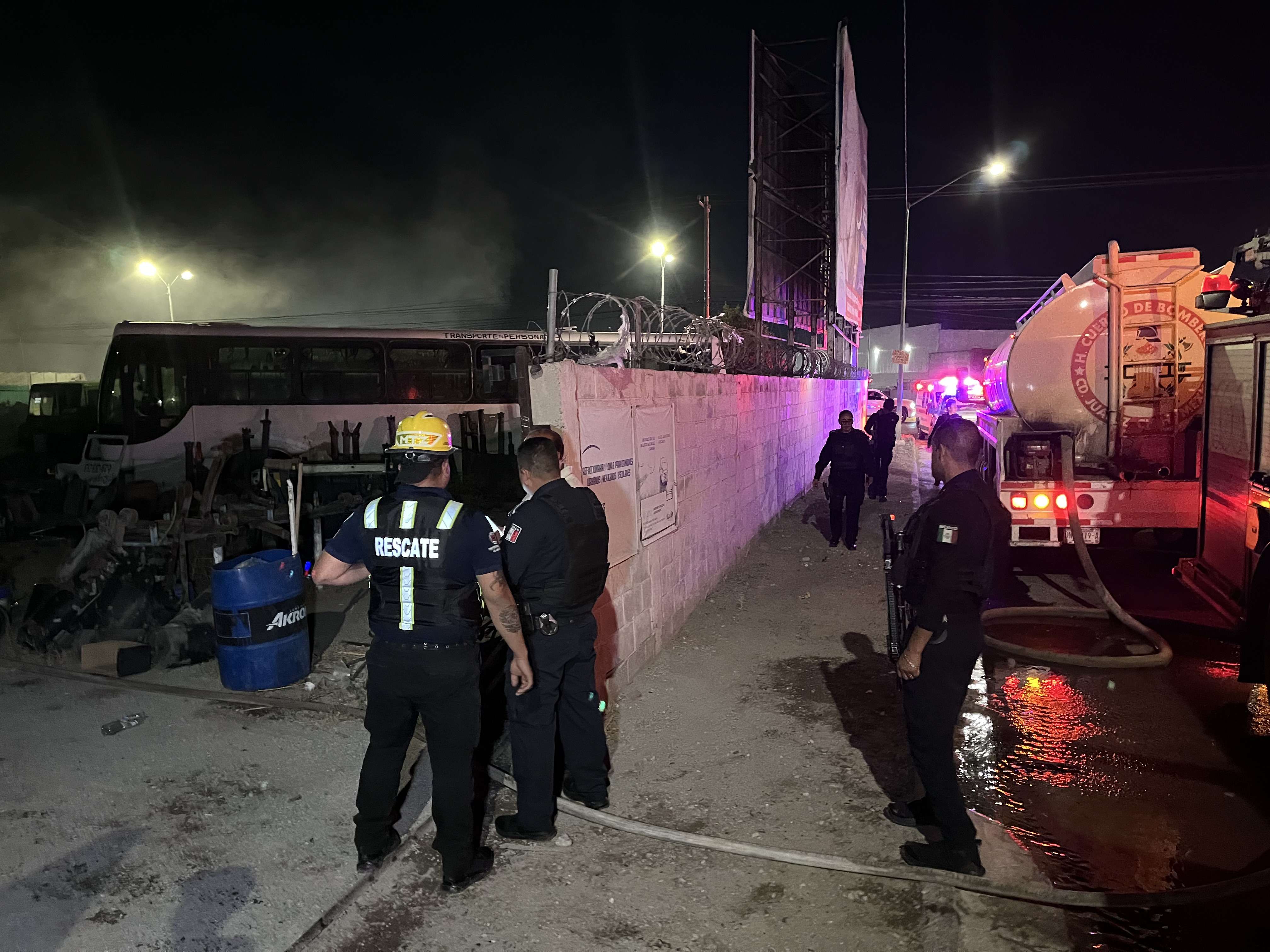 Elementos de seguridad pública municipal fueron los primeros respondientes los cuales se entrevistaron con el velador y dijo desconocer cómo inició el siniestro que acabó en su totalidad con los camiones, por lo que peritos del departamento de protección civil trabajaron en el lugar para esclarecer que fue lo que provocó el incendio.