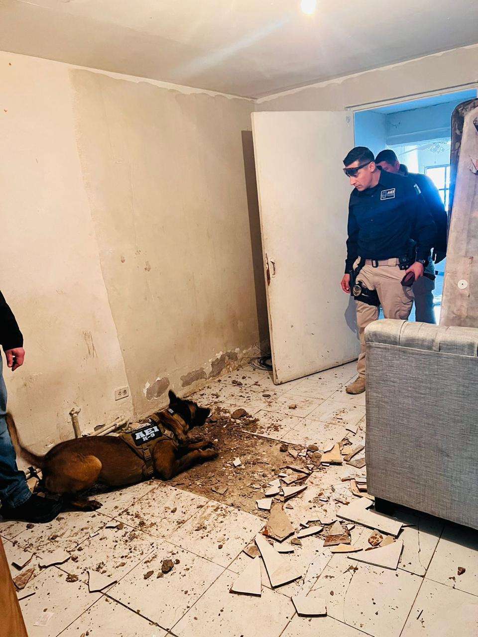 Las acciones en las que además participó el binomio canino K-9, se llevaron a cabo en la vivienda marcada con el numeral 515, ubicada sobre la calle Hospital, en donde, como parte de una carpeta de investigación, se realizó la búsqueda de evidencia, material biológico, así como cualquier indicio relacionado con la desaparición de un masculino.