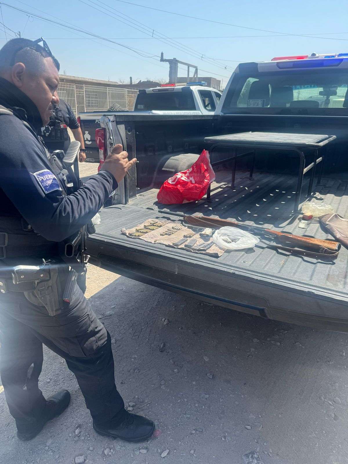 Agentes municipales atendieron un llamado al número de emergencias 911, donde solicitaron un apoyo ciudadano en el cruce de las calles Profesora Isaura Espinoza y Emilia Pérez Payán, en la colonia Independencia II, para el traslado de armas de fuego.