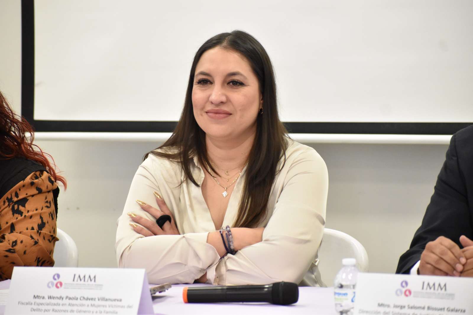 El panel tuvo como finalidad fomentar la reflexión crítica sobre las funciones cotidianas de dependencias procuradoras de justicia y su impacto en la vida de las mujeres, por lo que la actividad fue moderada por la coordinadora de Transversalización, Ana Karina Ruiz Trevizo, y contó con la participación de Wendy Paola Chávez Villanueva, titular de la Fiscalía Especializada en Atención a Mujeres Víctimas del Delito por Razones de Género y a la Familia (FEM), y Jorge Bissuet Galarza, Titular del Sistema de Justicia Cívica Municipal.