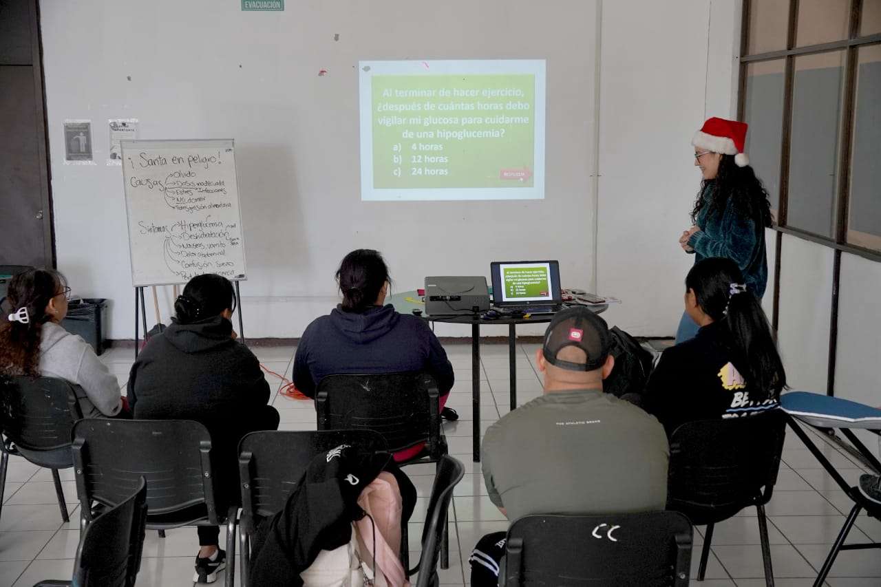 El programa -en marcha hasta mayo de 2026- promueve entornos informados, solidarios y capacitados para hacer frente a los desafíos físicos, emocionales y sociales asociados a vivir con diabetes. Las acciones incluyen sesiones educativas para niñas, niños y jóvenes; entrega de tiras reactivas para automonitoreo; pruebas de fondo de ojo; campañas de tamizaje de glucosa, presión arterial y salud ocular, así como jornadas comunitarias para la detección temprana. Dada la importancia de que no solo la persona que vive con diabetes esté capacitada, sino también su entorno, se llevan estos servicios de salud y educación directamente a zonas vulnerables de la ciudad.