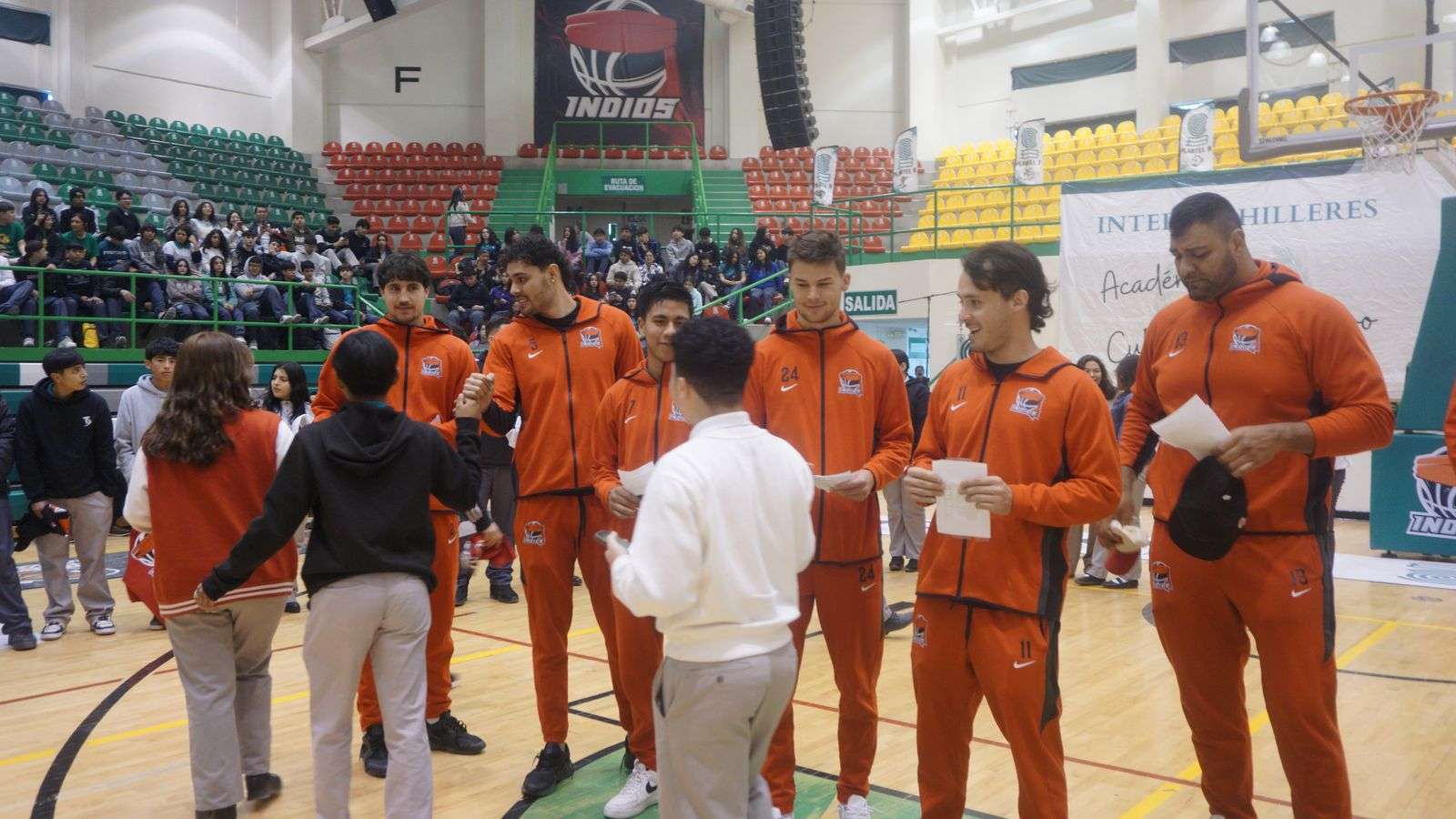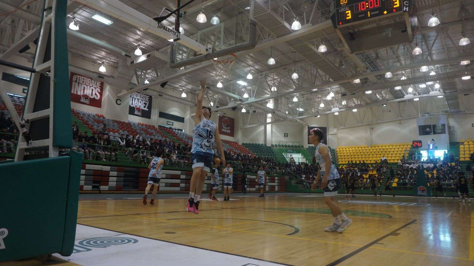 Asimismo, el equipo de baloncesto “Indios”, realizó el primer lanzamiento de balón, dando inicio al enfrentamiento entre los equipos representativos de los planteles 17 “Liebres” y 16 “Berrendos”.