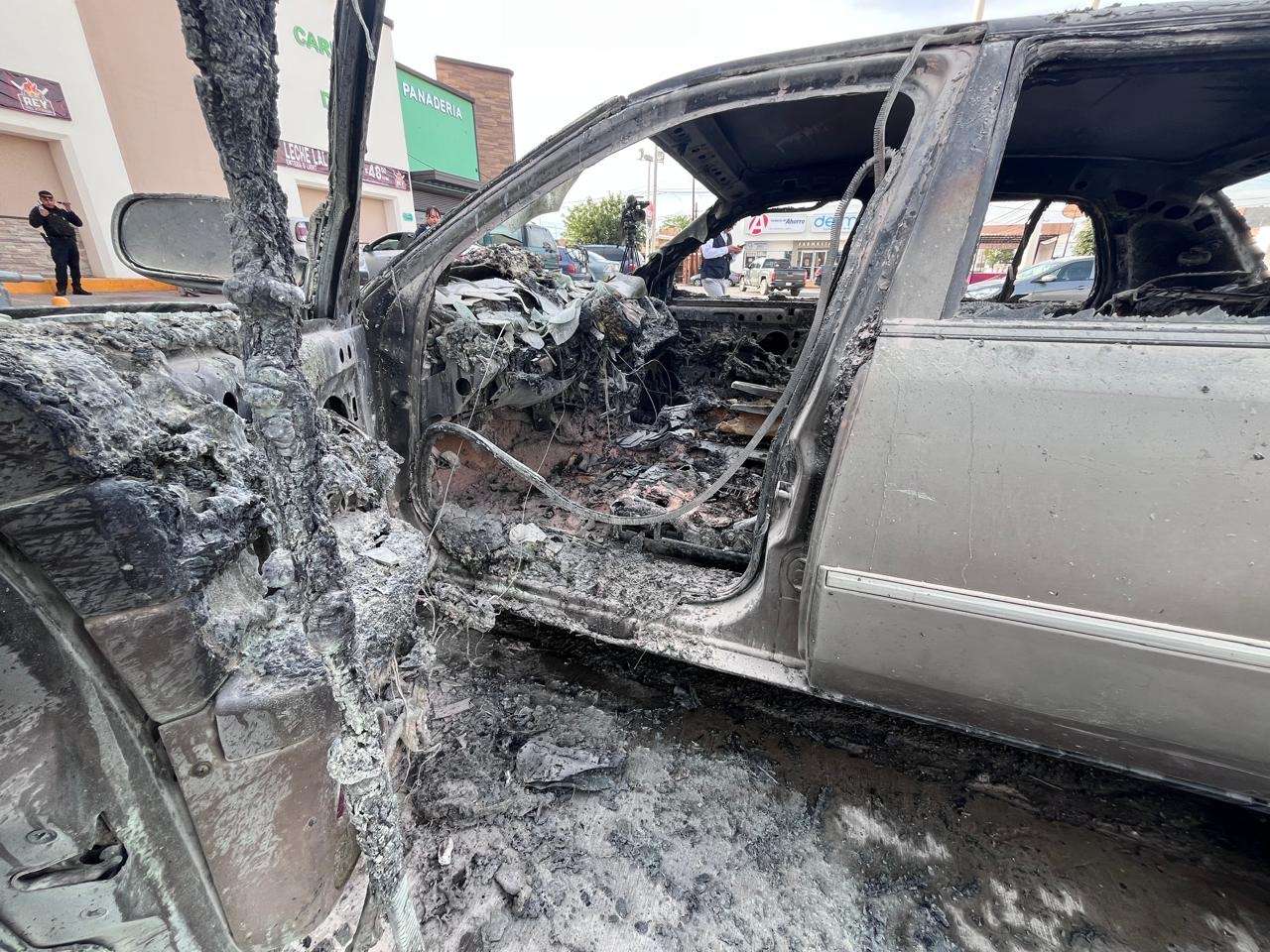 Cuidad Juárez.- Un vehículo fue incendiado en una plaza comercial ubicada en la avenida López Mateos y Plan de Ayala.