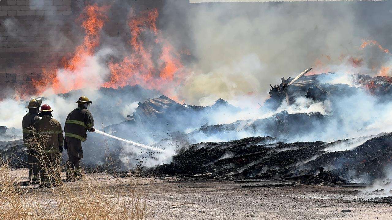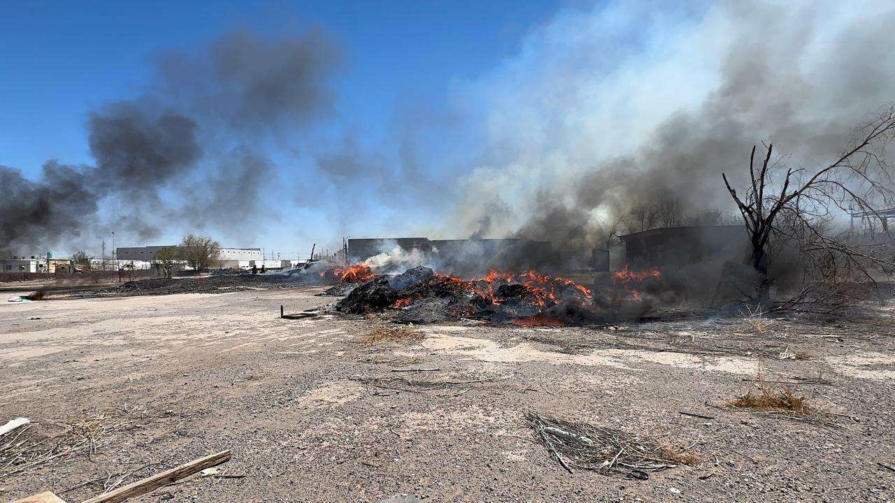Ciudad Juárez.- Un incendio de gran magnitud se registró la tarde de este domingo en una cartonera abandonada en la colonia Waterfill, en Ciudad Juárez.