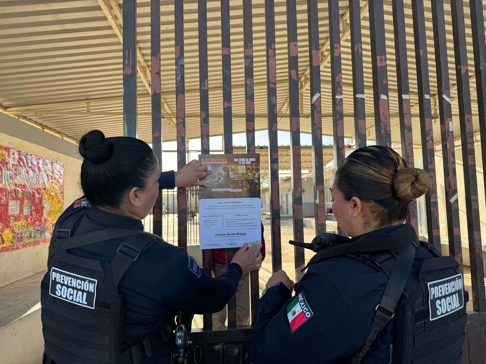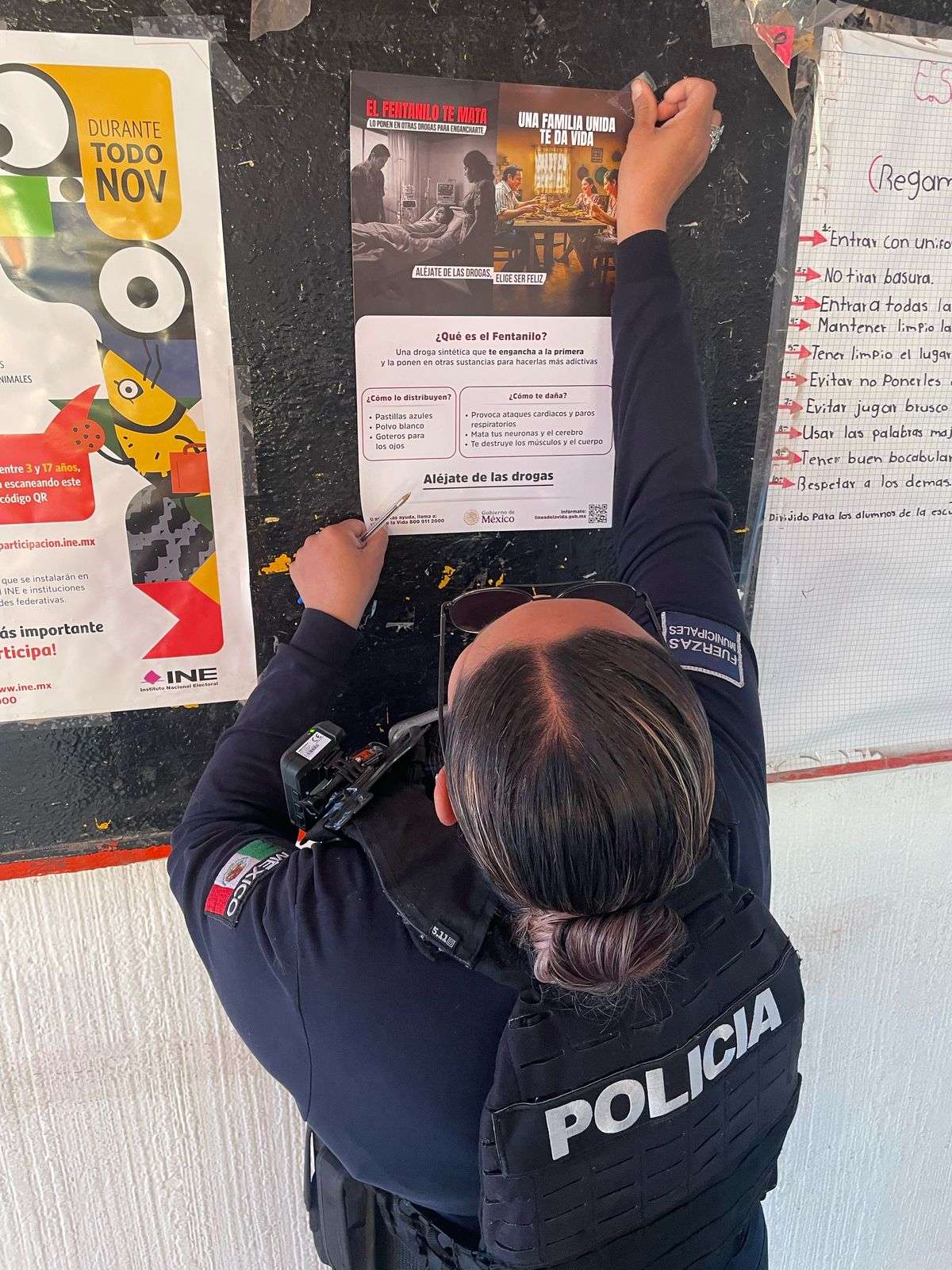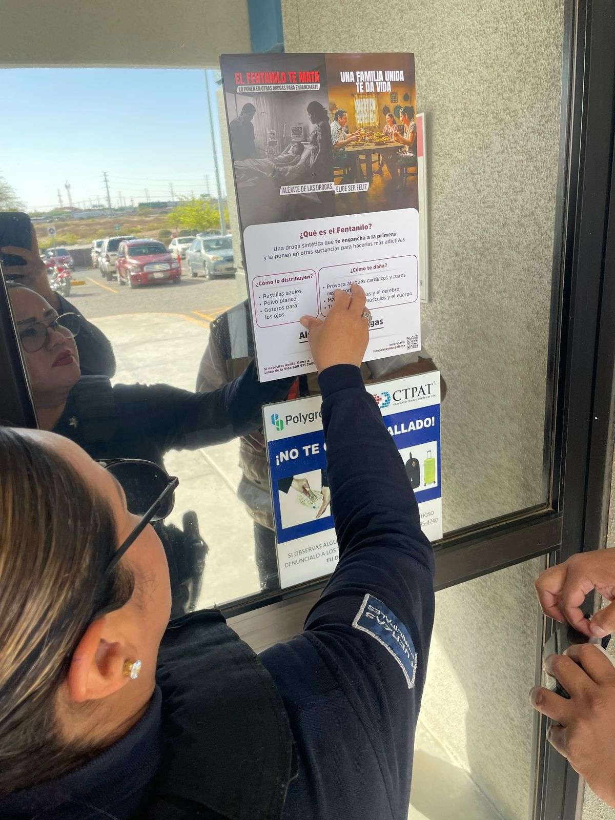 En esta ocasión elementos municipales acudieron a diversos centros públicos, así como planteles escolares y empresas maquiladoras para la colocación de información impresa con contenido acerca del fentanilo, con la finalidad de que más personas puedan tener acceso a esta temática de interés.