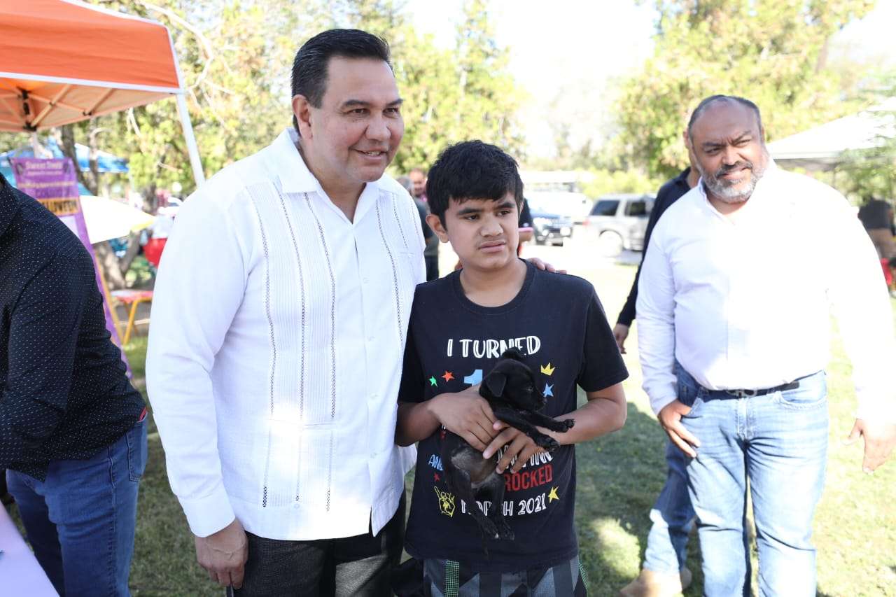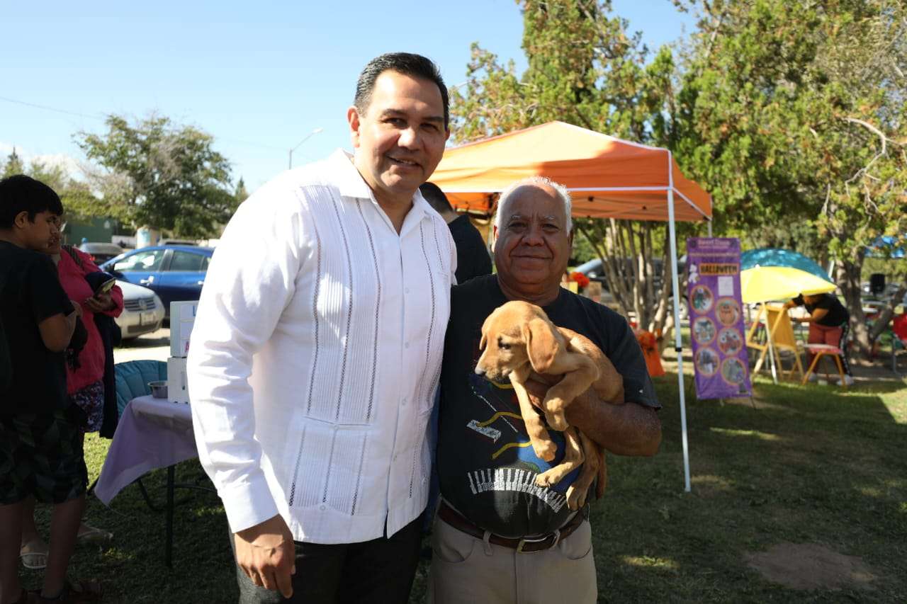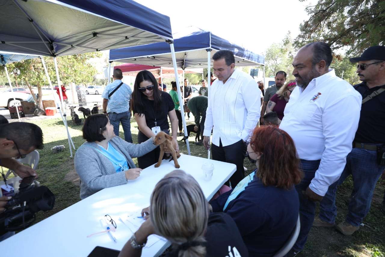 El Presidente Municipal, Cruz Pérez Cuéllar, acudió a hacer el arranque oficial y recorrió el área donde se realiza esta cruzada, saludando a quienes se encontraban realizando trámite para adopción, así como a los diversos comerciantes participantes, quienes ofrecen artículos para mascotas.
