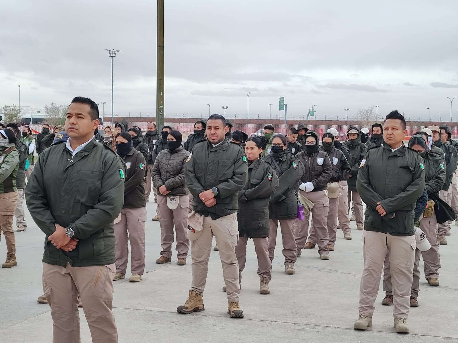Los agentes de INM se reunieron en la explanada de la X dónde Garduño acompañado de Andrés Vidal Islas director de Regulación Migratoria y Héctor Martínez Castuera director de Coordinaciones dieron el arranque oficial.