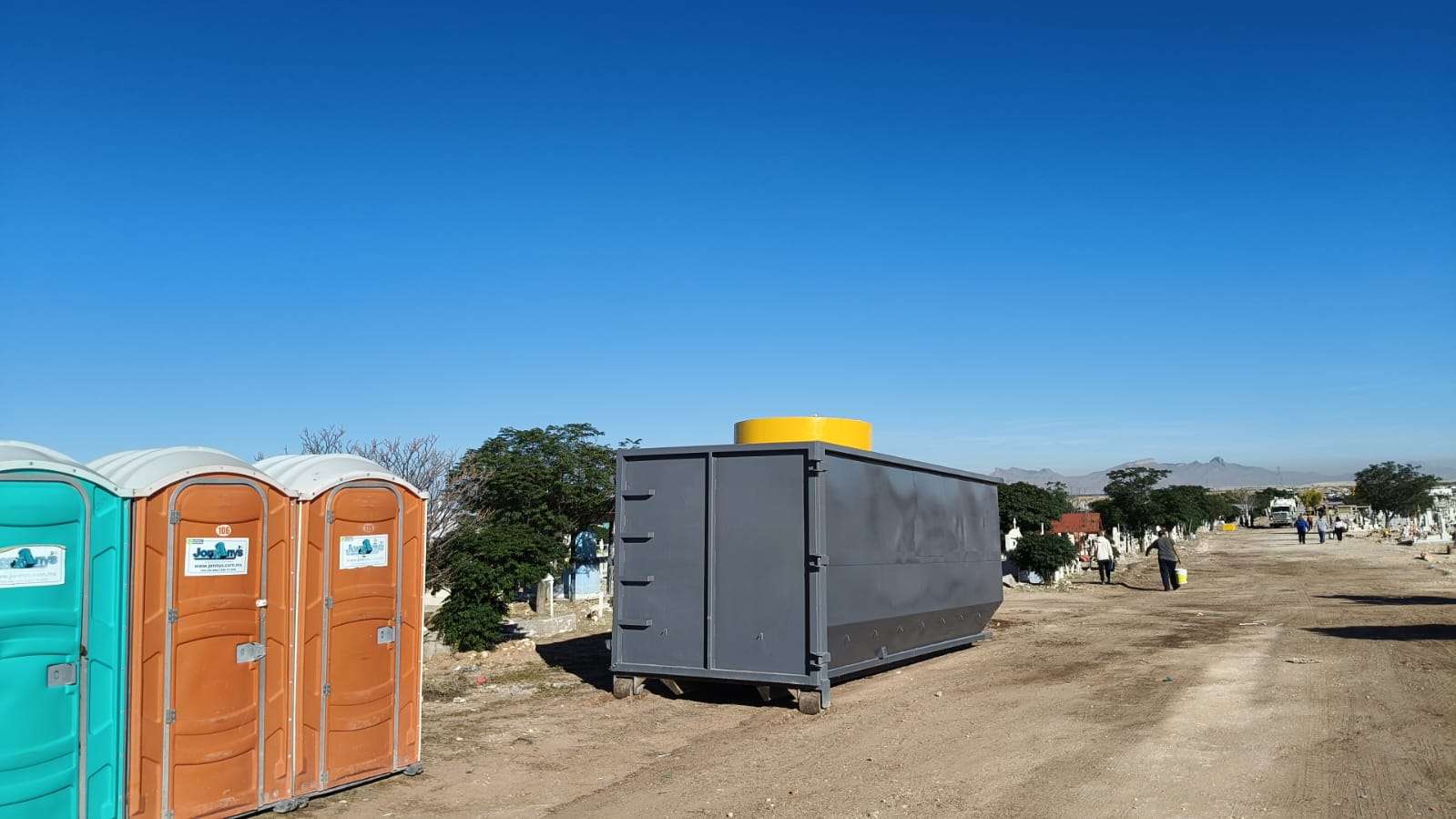 Ciudad Juárez.- Con el propósito de mantener en buen estado los alrededores del Panteón San Rafael durante las visitas por el Día de Muertos, la Dirección de Limpia del Gobierno Municipal instaló tres módulos del programa “Puntos Limpios a tu Colonia” en este camposanto municipal.