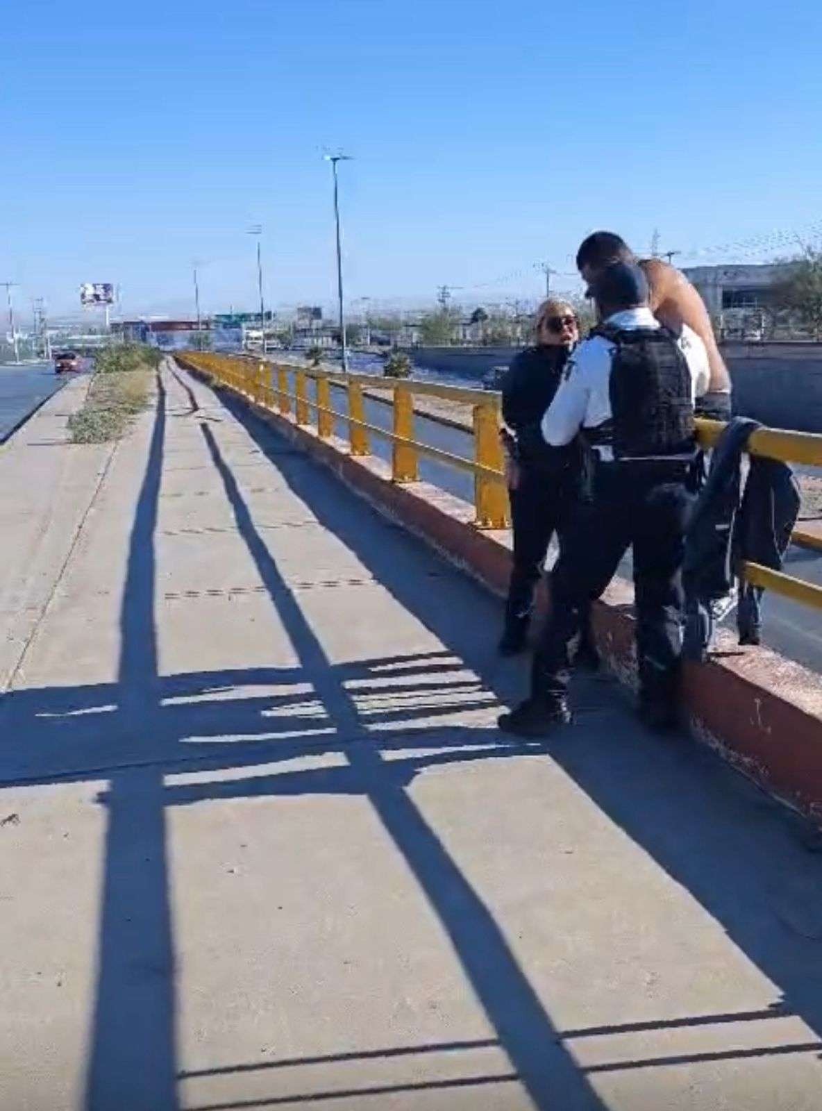 Ciudad Juárez.– Agentes de la Coordinación General de Seguridad Vial evitaron esta mañana que un hombre se lanzara del puente ubicado en el bulevar Independencia y Santiago Troncoso.