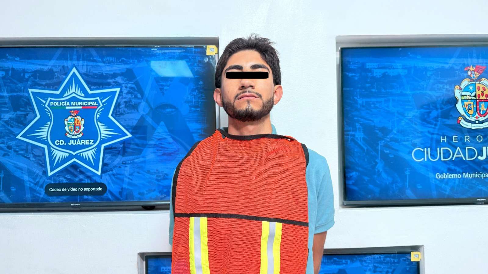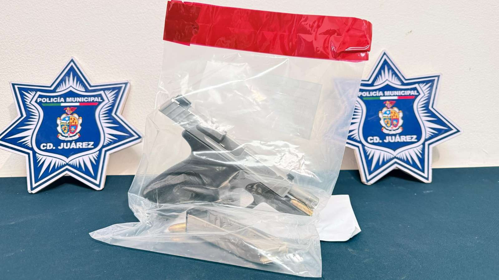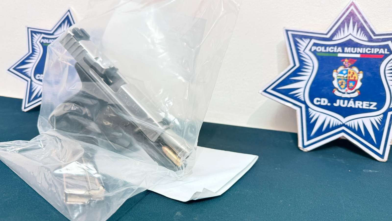 Ciudad Juárez -. Elementos de la Secretaría de Seguridad Pública Municipal, adscritos a la Estación de Policía del Distrito Riveras, detuvieron a Diego Armando A. R., por su presunta responsabilidad en la comisión del delito de homicidio y delitos contra la ley federal de armas de fuego y explosivos.