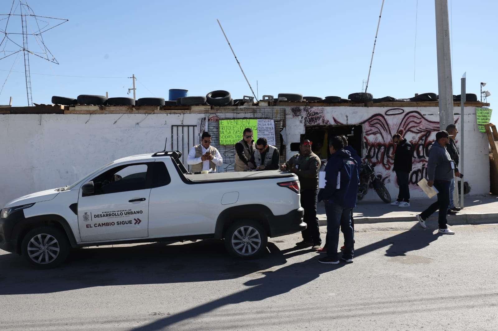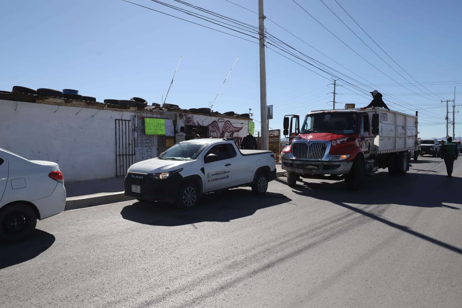 Ciudad Juárez.- La Dirección de Limpia, en coordinación con varias dependencias municipales, llevó a cabo el tercer operativo de la semana de Reordenamiento Urbano, en esta ocasión en un espacio que era usado como desponchadora, el cual ya había sido sancionado.
