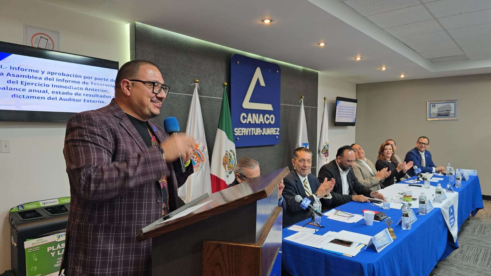 Ciudad Juárez.- Iván Pérez fue reelecto como presidente de la Cámara Nacional de Comercio (Canaco) de Ciudad Juárez, tras la Asamblea General Ordinaria realizada recientemente, donde 1,407 socios reafirmaron su confianza en su liderazgo para el periodo 2026-2027.