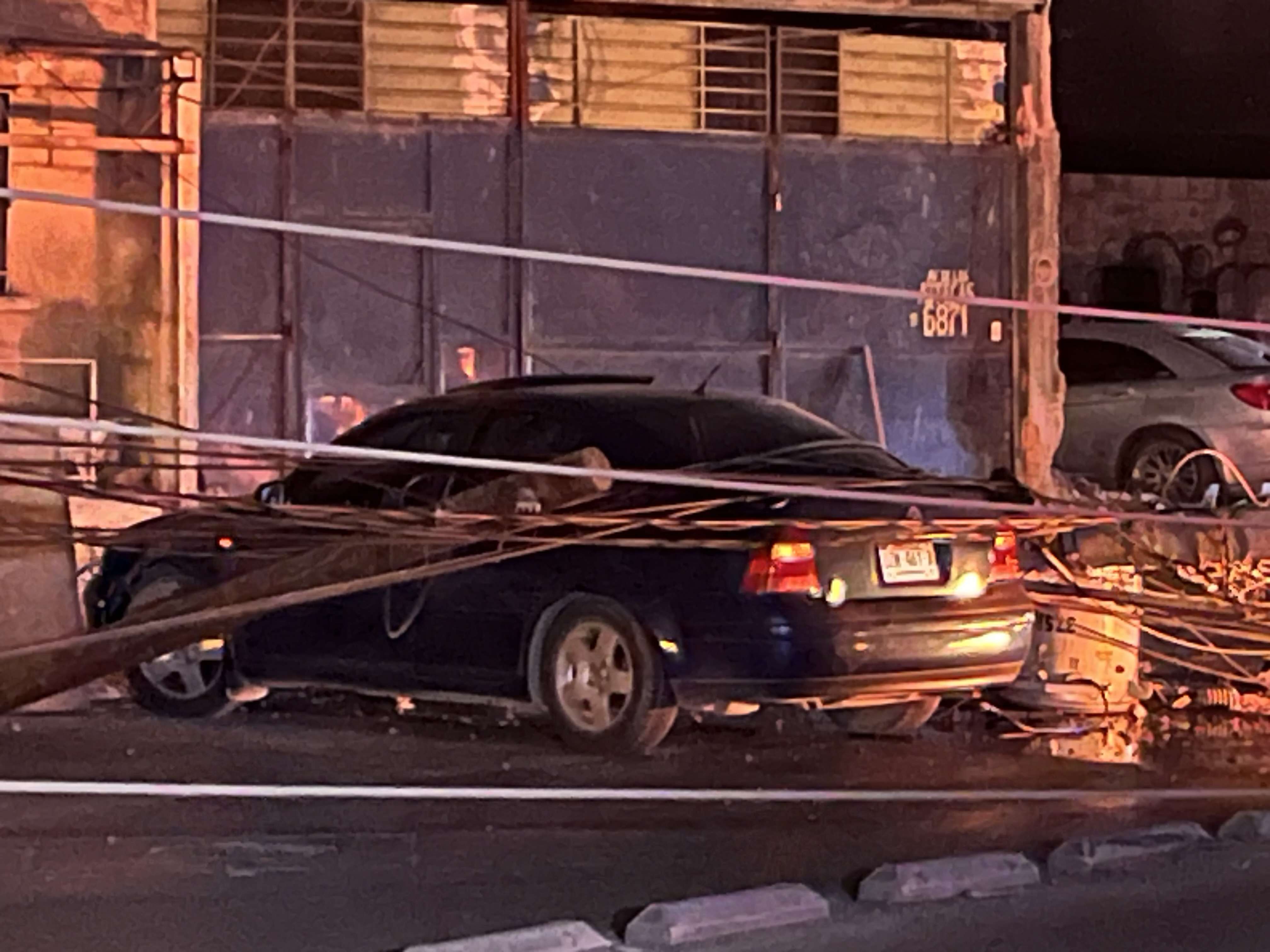 Ciudad Juárez.-Un joven de 18 años identificado como Isaac Flores que conducía en estado de ebriedad provocó un fuerte accidente la madrugada, luego de estrellar su vehículo contra un poste de la Comisión Federal de Electricidad (CFE), lo que ocasionó la caída de otros dos postes y un apagón en la zona.