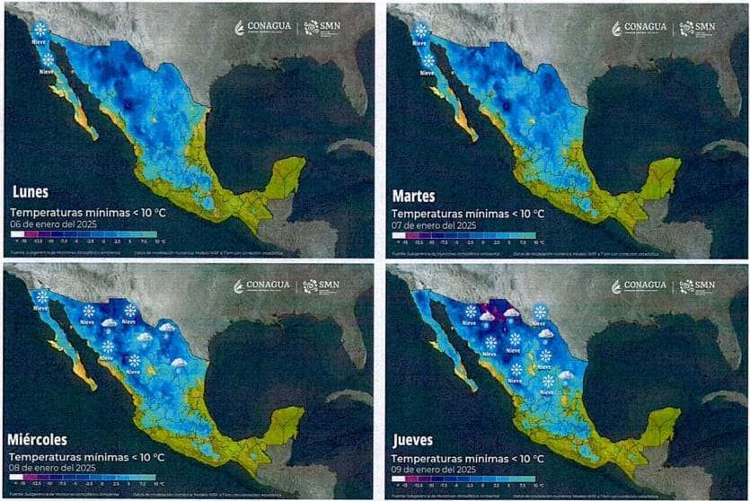 La llegada al país de una vaguada polar, ocasionará un marcado descenso de temperaturas, vientos de muy fuertes a intensos y lluvia engelante en la mayor parte del territorio estatal, condiciones que se mantendrán del lunes 6, al sábado 11 de enero.
