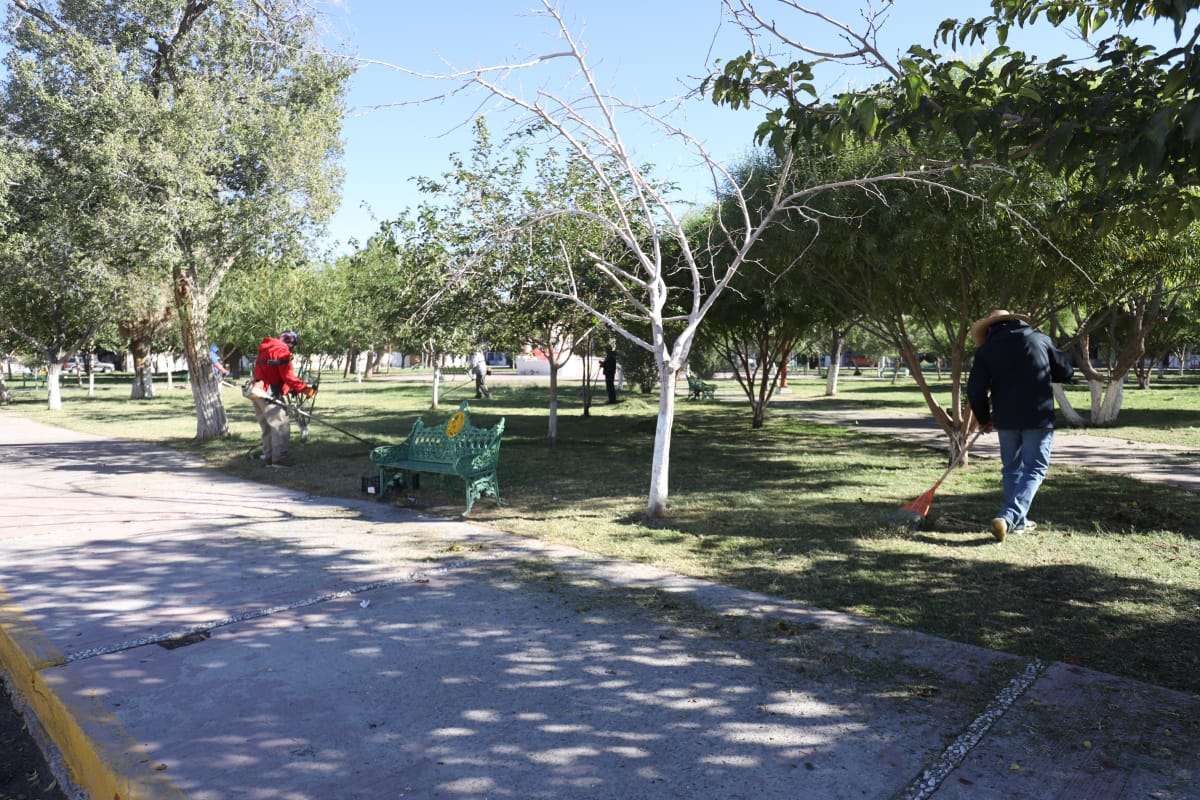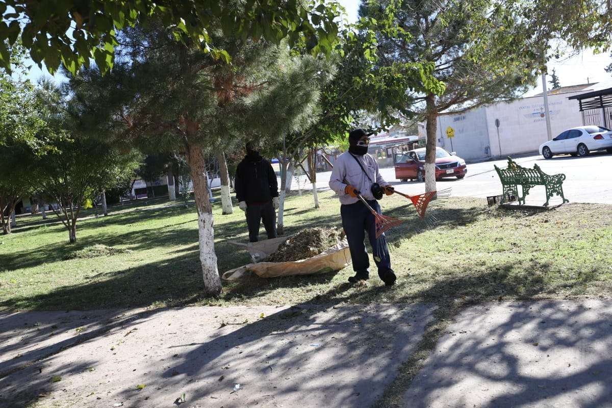 Ciudad Juárez.- Personal de la Dirección de Parques y Jardines atendió el parque Hidalgo, localizado en las calles Costa Rica, Pedro S. Varela y Tepeyac.