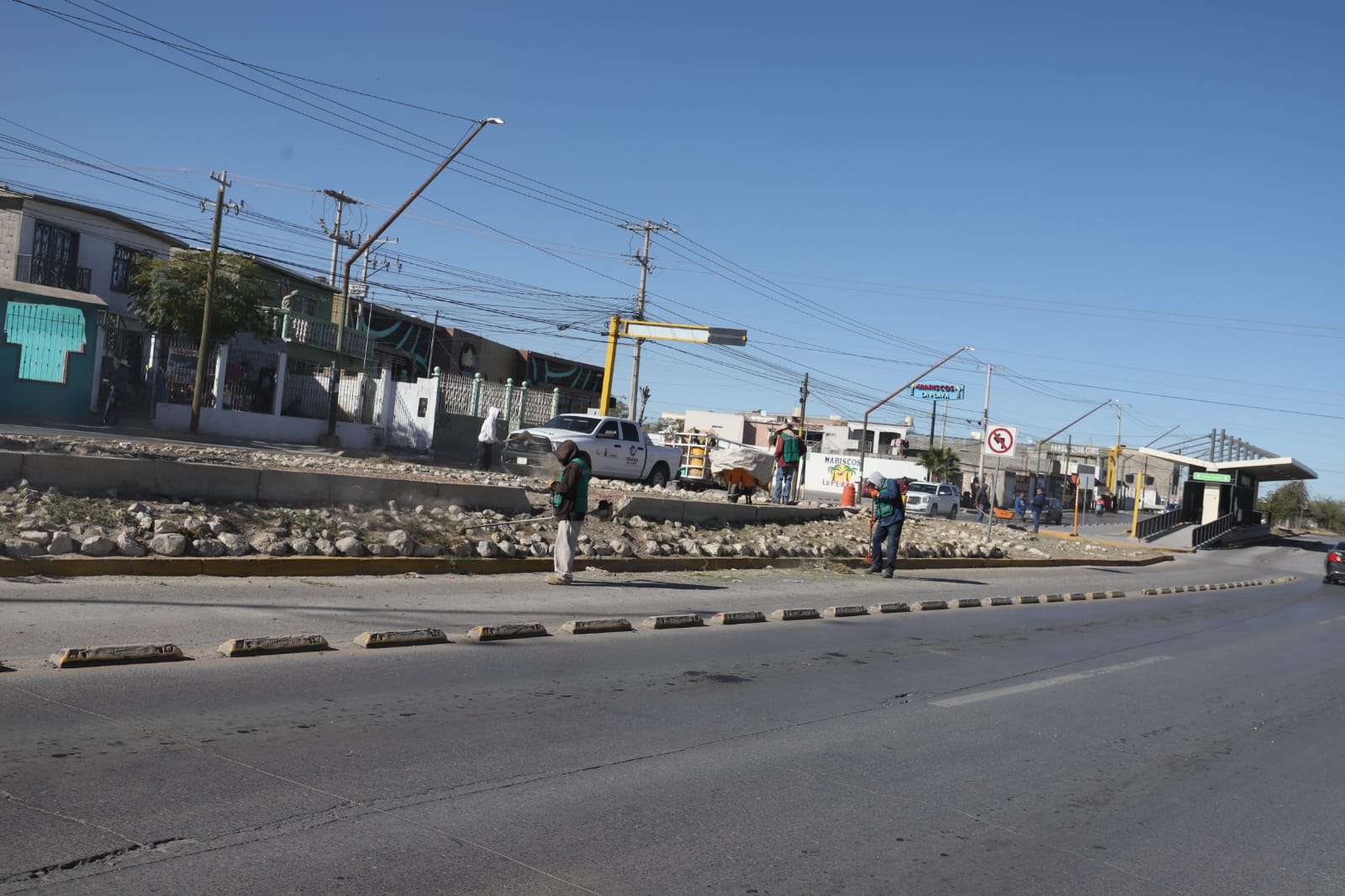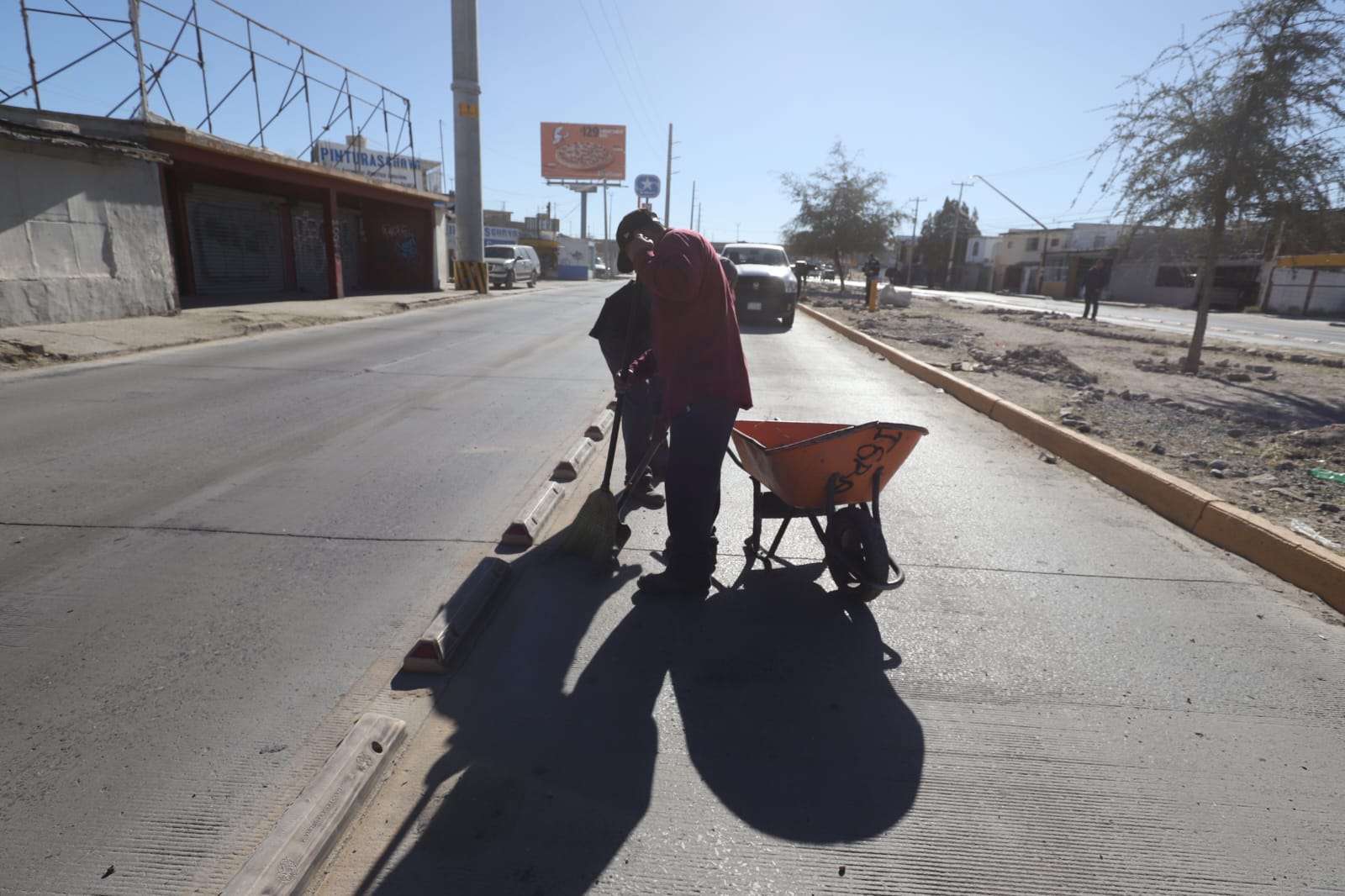 Ciudad Juárez.- La Dirección General de Servicios Públicos llevó a cabo un operativo especial de limpieza y mantenimiento sobre el bulevar Zaragoza, desde la calle Toronja Roja hasta el bulevar Independencia, como parte de los preparativos para el desfile por el 366 aniversario de la ciudad que se llevará a cabo este domingo.
