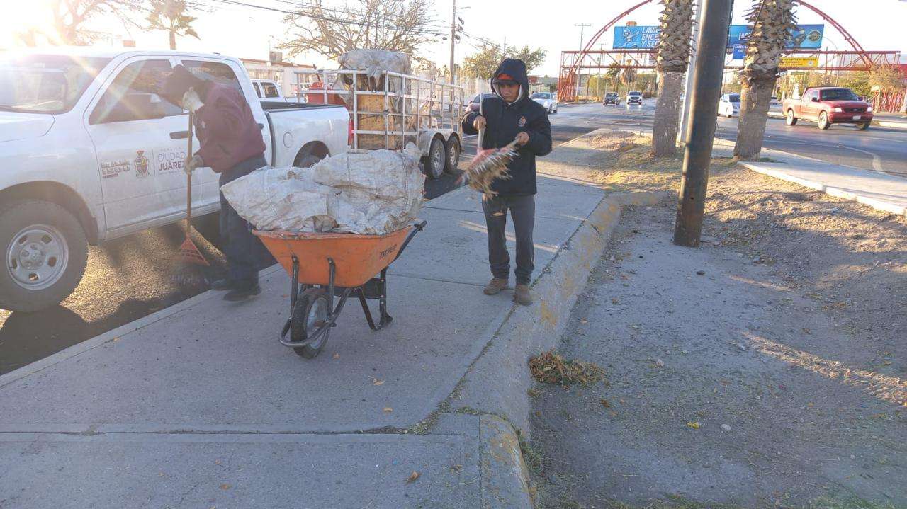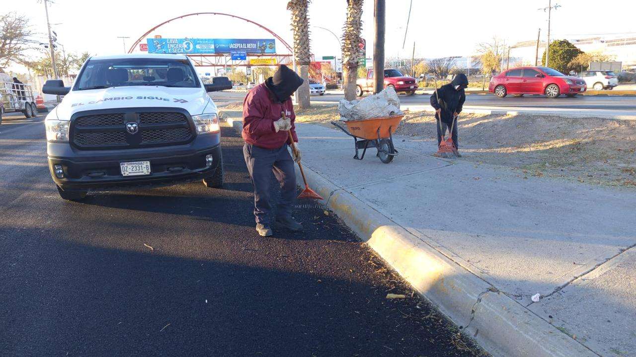 Ciudad Juárez.- La Dirección General de Servicios Públicos Municipales realizó trabajos de atención y mantenimiento en distintos tramos de la avenida Tecnológico, así como en el parque lineal Mar Azul, como parte de las acciones complementarias a las obras entregadas por el Presidente Municipal, Cruz Pérez Cuéllar.
