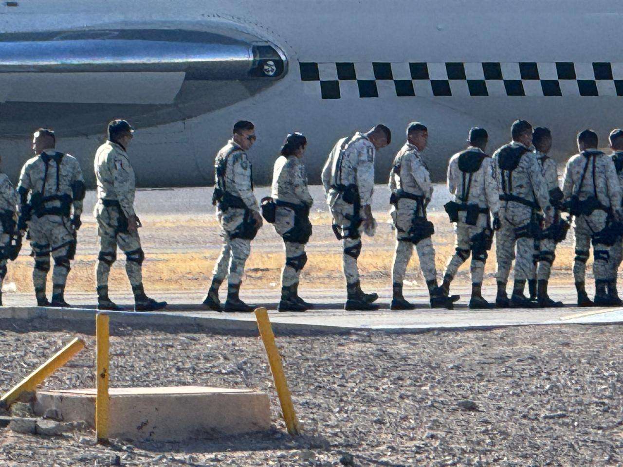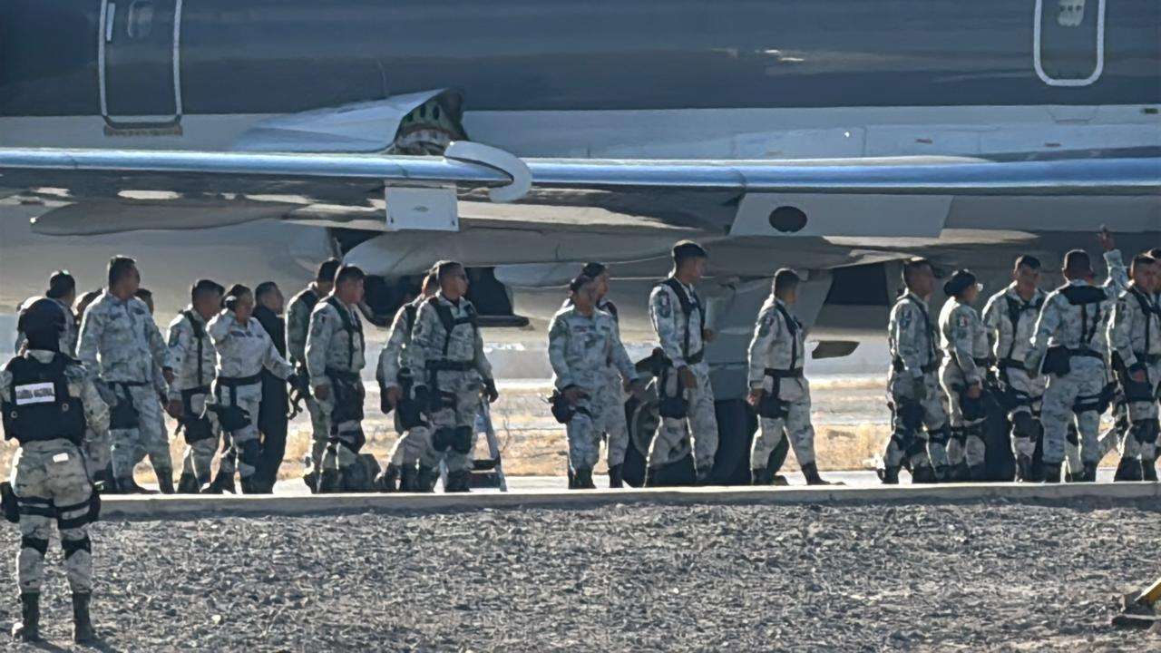 Ciudad Juárez.- A las 10 de la mañana llegaron al Aeropuerto Internacional al Abraham González de Ciudad Juárez 120 elementos de la Guardia Nacional.