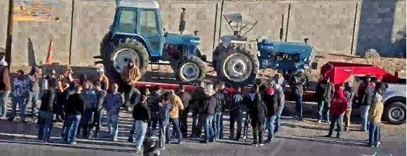 Las concentraciones están acompañadas de maquinaria agrícola, como tractores y arados, que hacen visible la presencia de los productores que exigen se respete su derecho al agua para la producción de alimentos, carne y forraje.