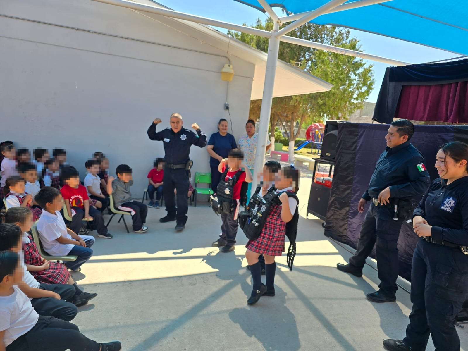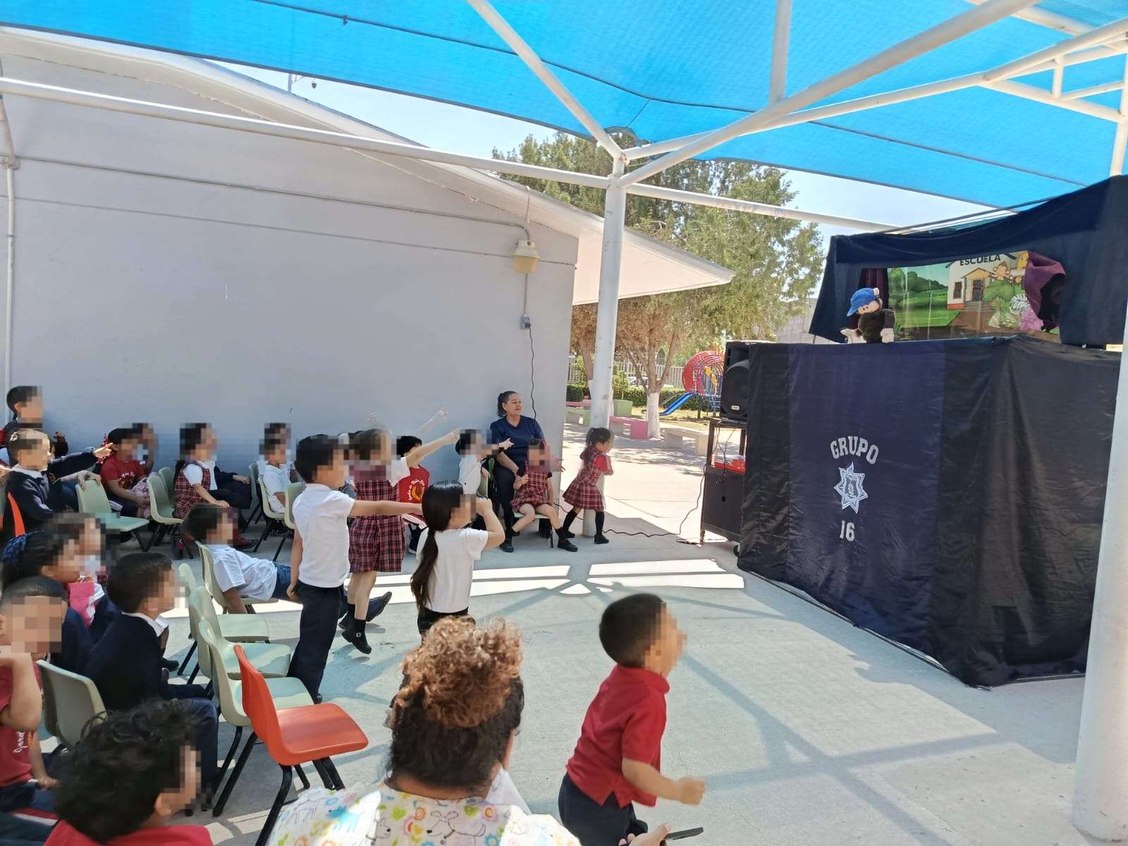 Ciudad Juárez.- Dentro del marco de las acciones de prevención social y apoyo ciudadano, personal de la Secretaría de Seguridad Pública Municipal adscritos a la Dirección de Prevención Social, llevaron a cabo una función del “Teatrino” al Jardín de Niños Club Sertoma.