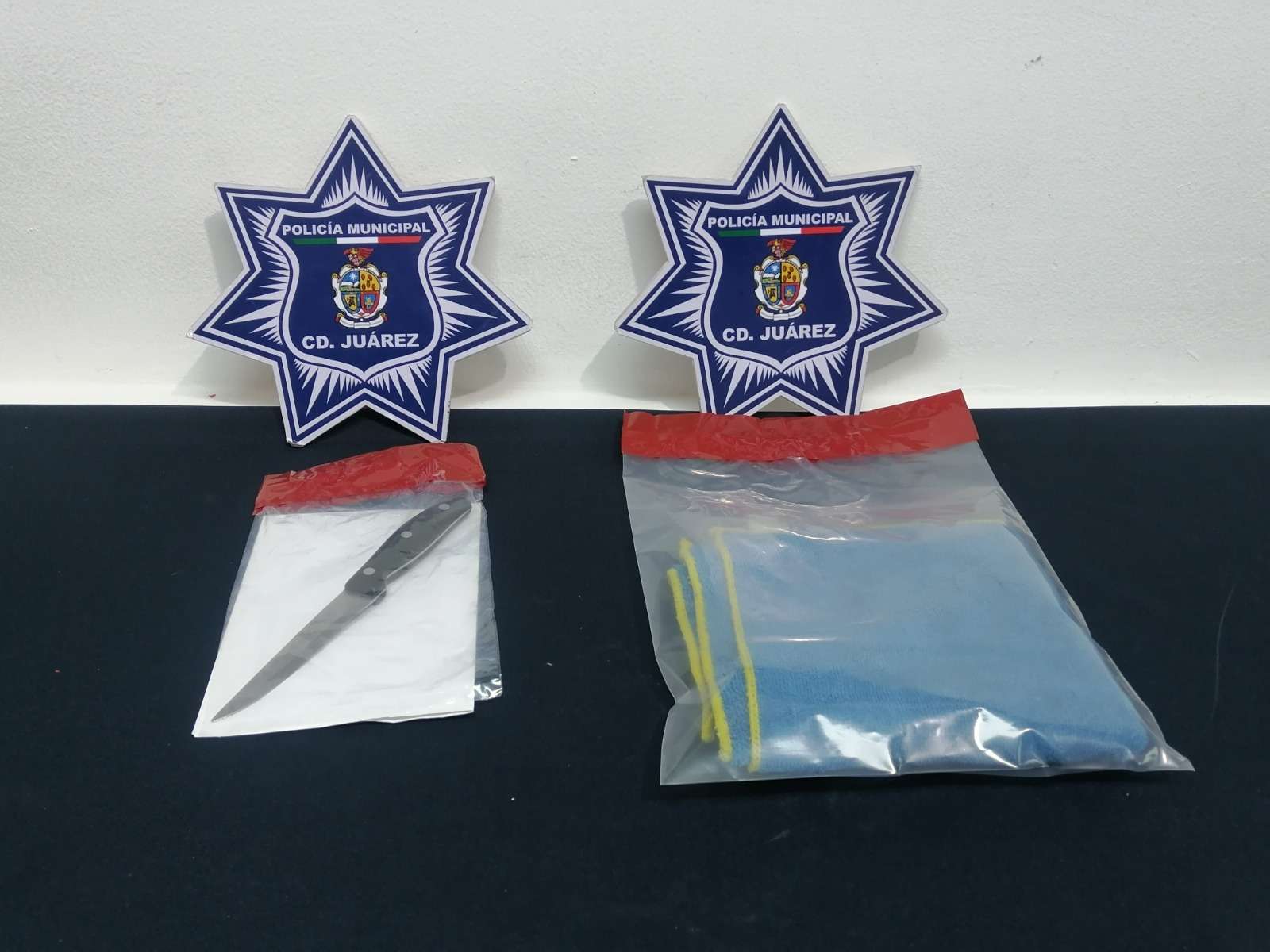 Al realizarle una inspección preventiva por protocolos de seguridad se localizó en el interior del automóvil una franela color azul con amarillo y un cuchillo, objetos que presuntamente utilizó para cometer el delito, realizando la detención de quien dijo llamarse Alejandro B. Z. de 19 años.