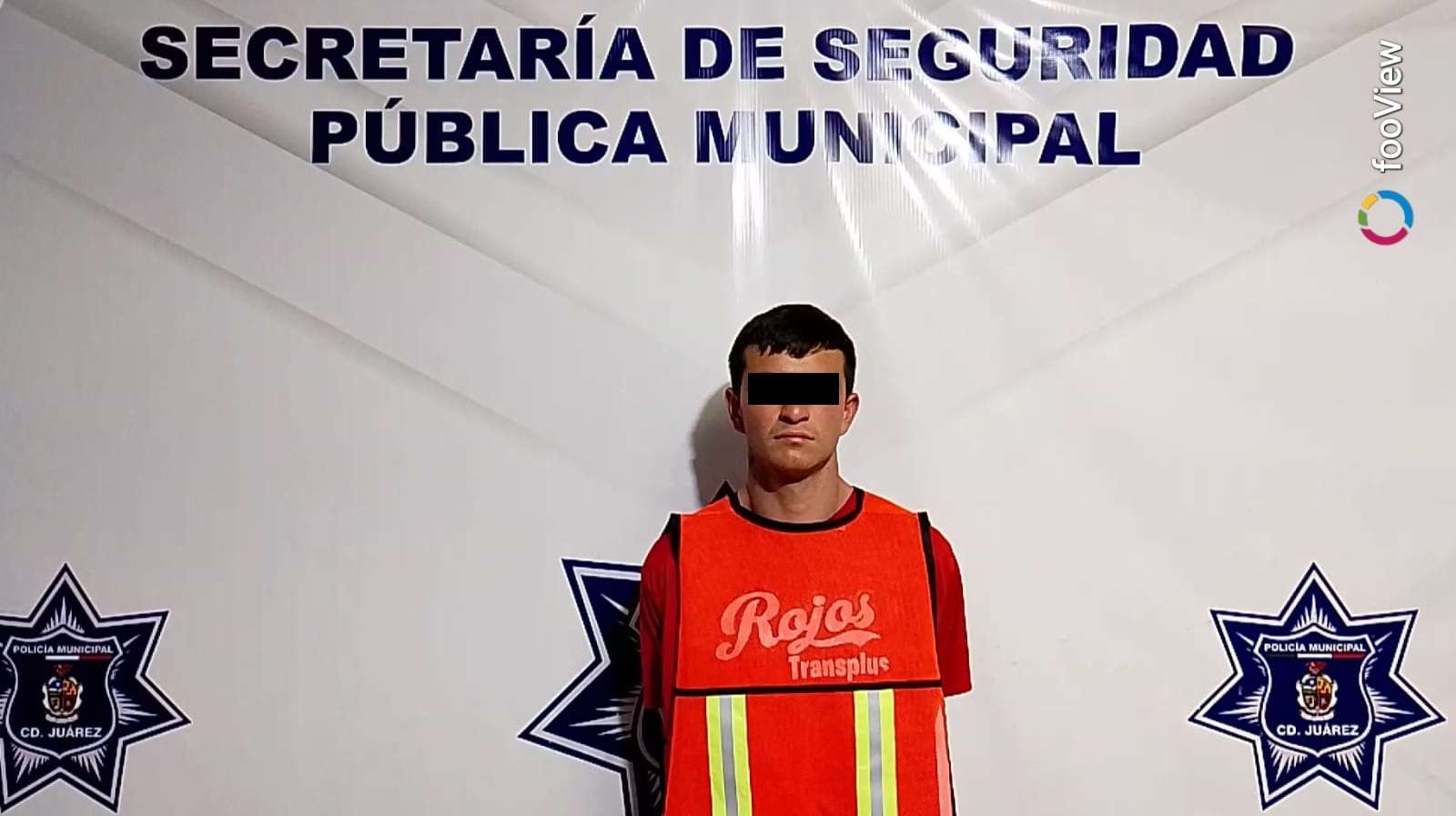 Ciudad Juárez.- Elementos de la Secretaría de Seguridad Pública Municipal arrestaron a Marco Antonio G. S., por su presunta responsabilidad en la comisión de delitos contra la salud, mismo que será investigado por robo con violencia a tiendas de conveniencia.