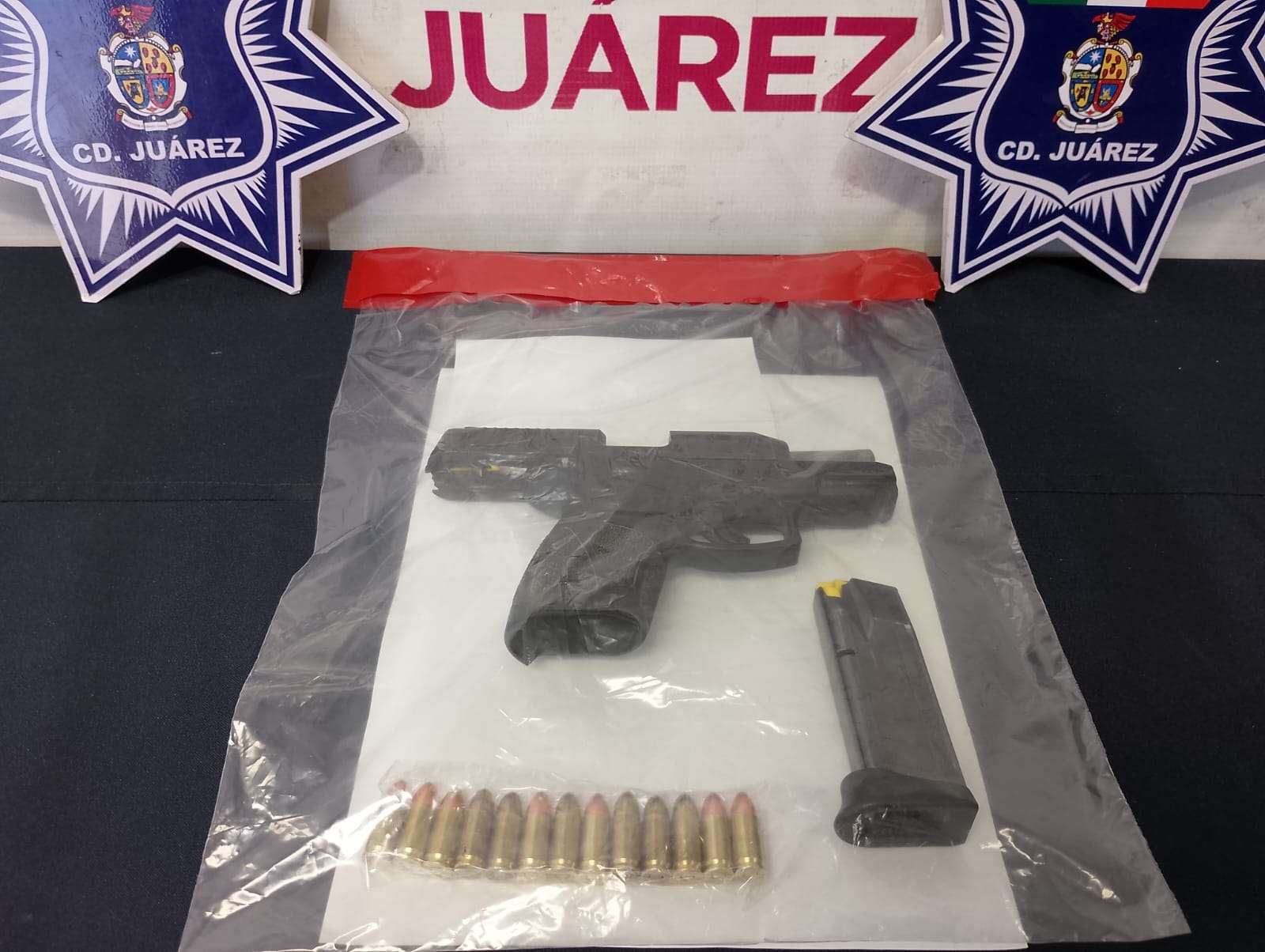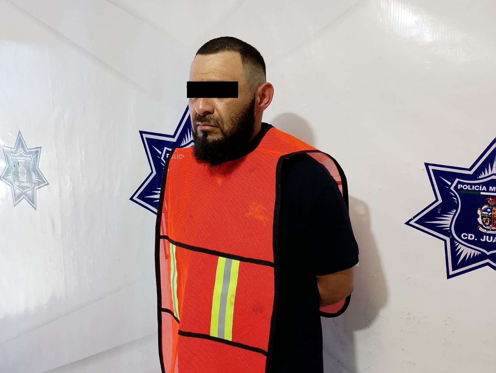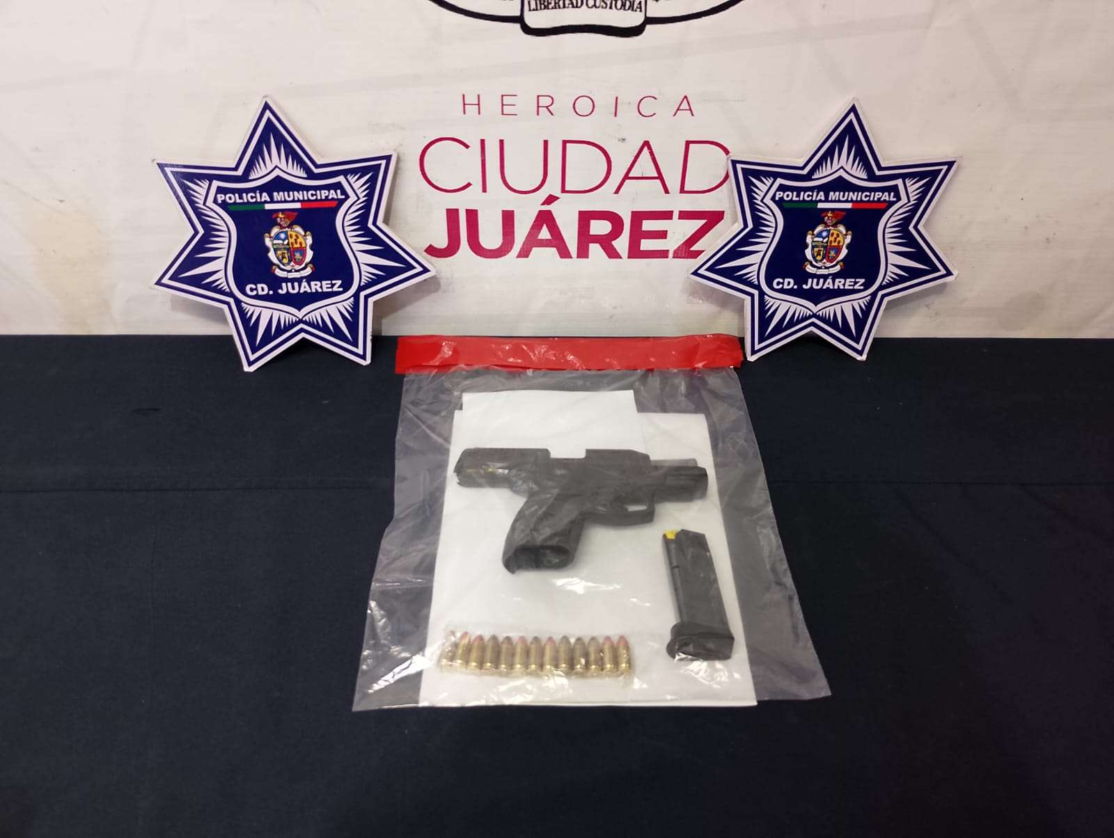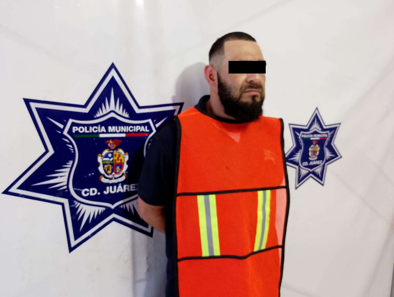 Ciudad Juárez -. Elementos de la Secretaría de Seguridad Pública Municipal arrestaron a Marco Antonio B. A., por su presunta responsabilidad en la comisión de delitos contra la ley federal de armas de fuego y explosivos, mismo que cuenta con una orden de aprehensión por el delito de violencia familiar.