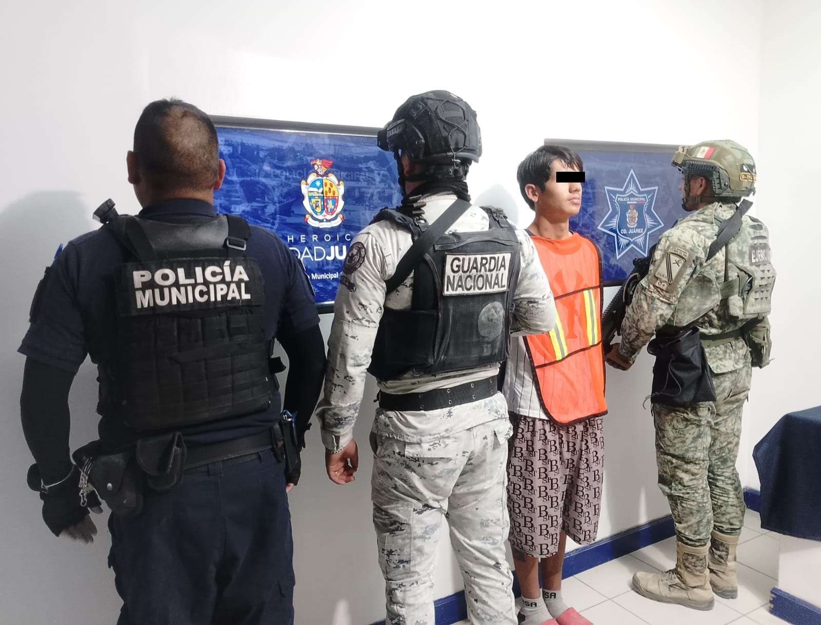 Ciudad Juárez .- Agentes de la Secretaría de Seguridad Pública Municipal en coordinación con Guardia Nacional y la Secretaría de la Defensa Nacional, arrestaron a Ramón Alexis M. J., por su presunta responsabilidad en la comisión de delitos contra la ley federal de armas de fuego y explosivos.