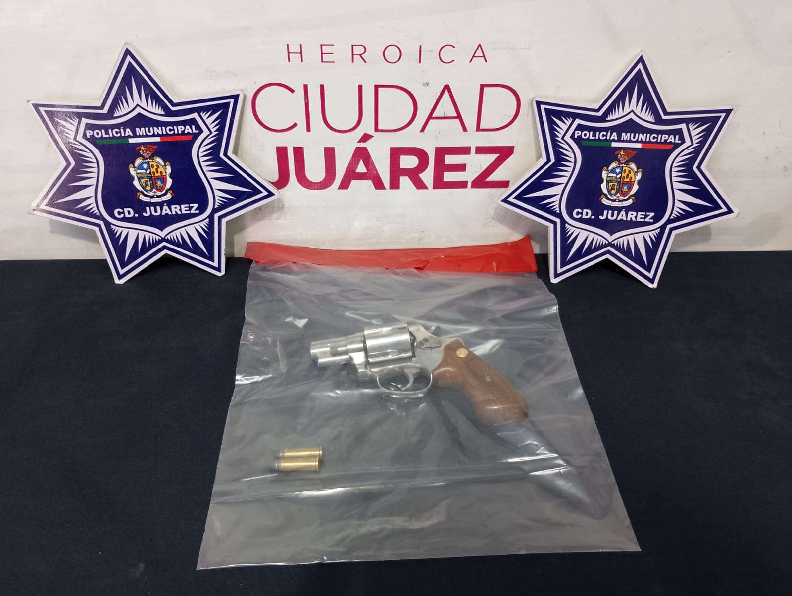 Cabe mencionar que, el afectado proporcionó a los oficiales un arma de fuego tipo revólver calibre .38 especial, abastecido con dos cartuchos útiles, la cual fue asegurada al confirmarse que el ahora detenido no contaba con licencia de porte.