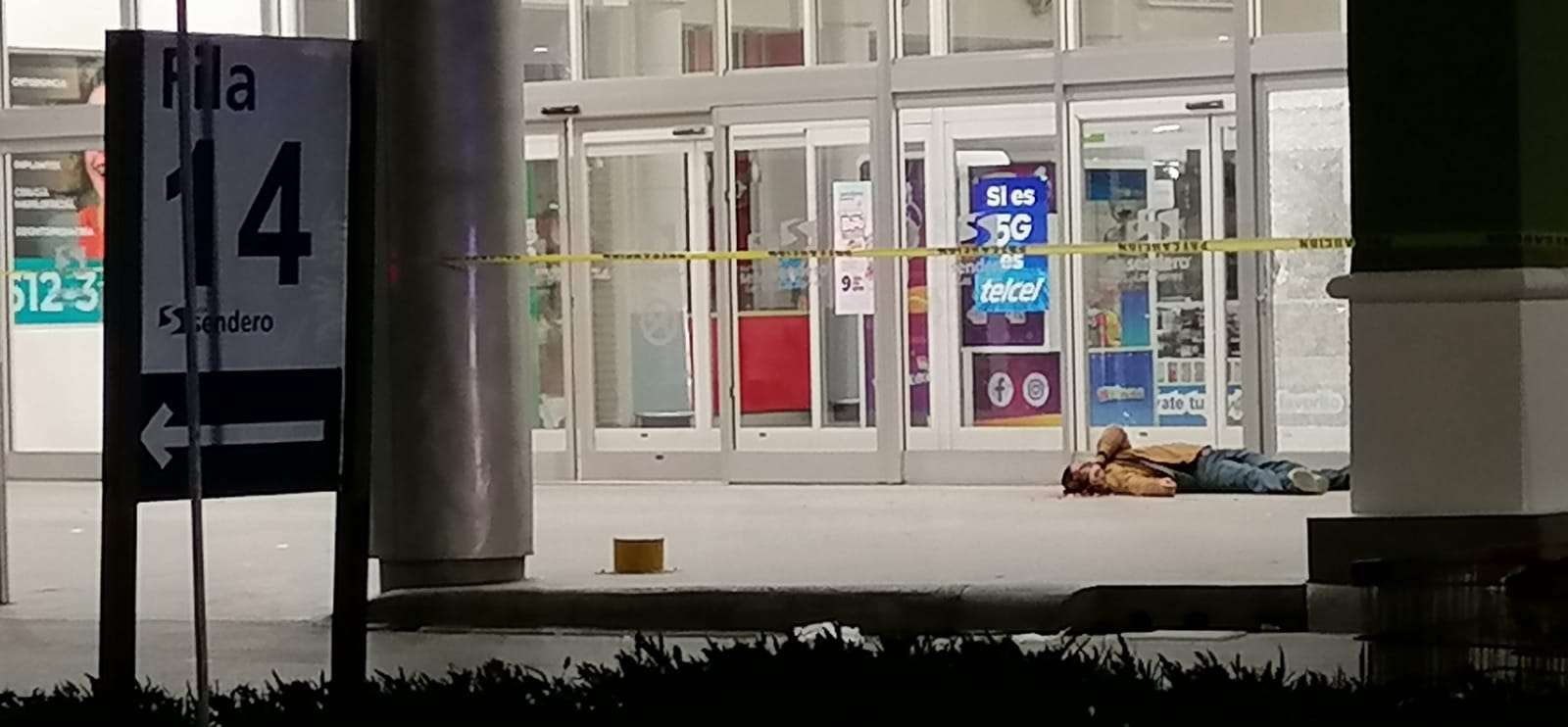El hombre quedó tendido justo en el acceso a las salas de cine de Conépolis sobre Avenida Las Torres y Palacio de Mitla.
